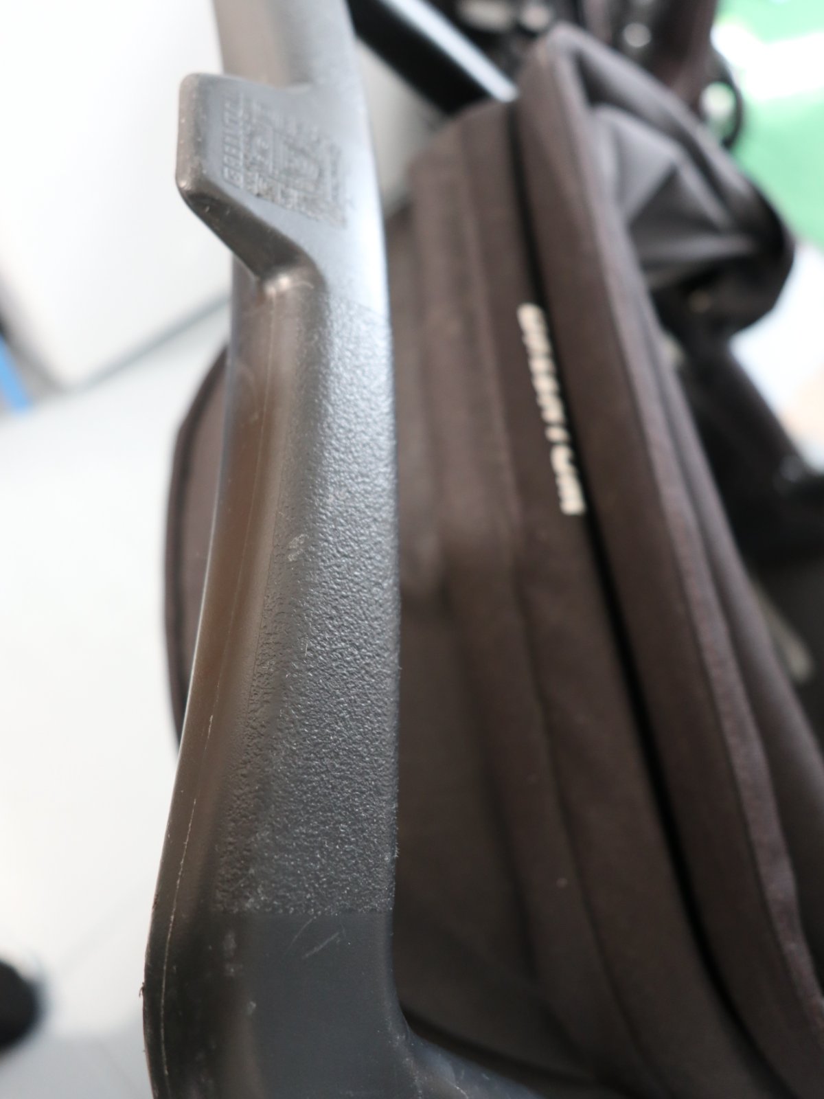 ( bežné známky používania - keďže je z plastu sem tam sa mini škrabanček / ošuchnutie nájde – ale nič hrozné – nič čo by nepribudlo na novom kočíku v prvý týždeň používania :) ). Akurát madlo, za ktoré kočík tlačíte je zospodu trošku šuchnuté - manželova šikovnosť, keď skladal prvykrát kočík :) ale vôbec to NIEJE VIDITEĽNÉ - je to zospodu :)