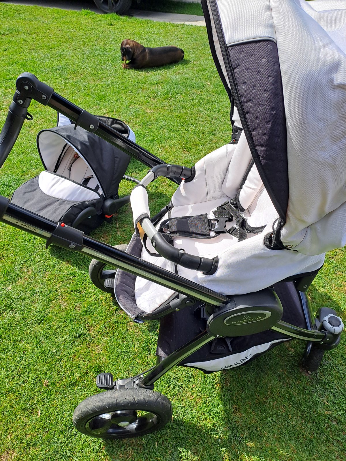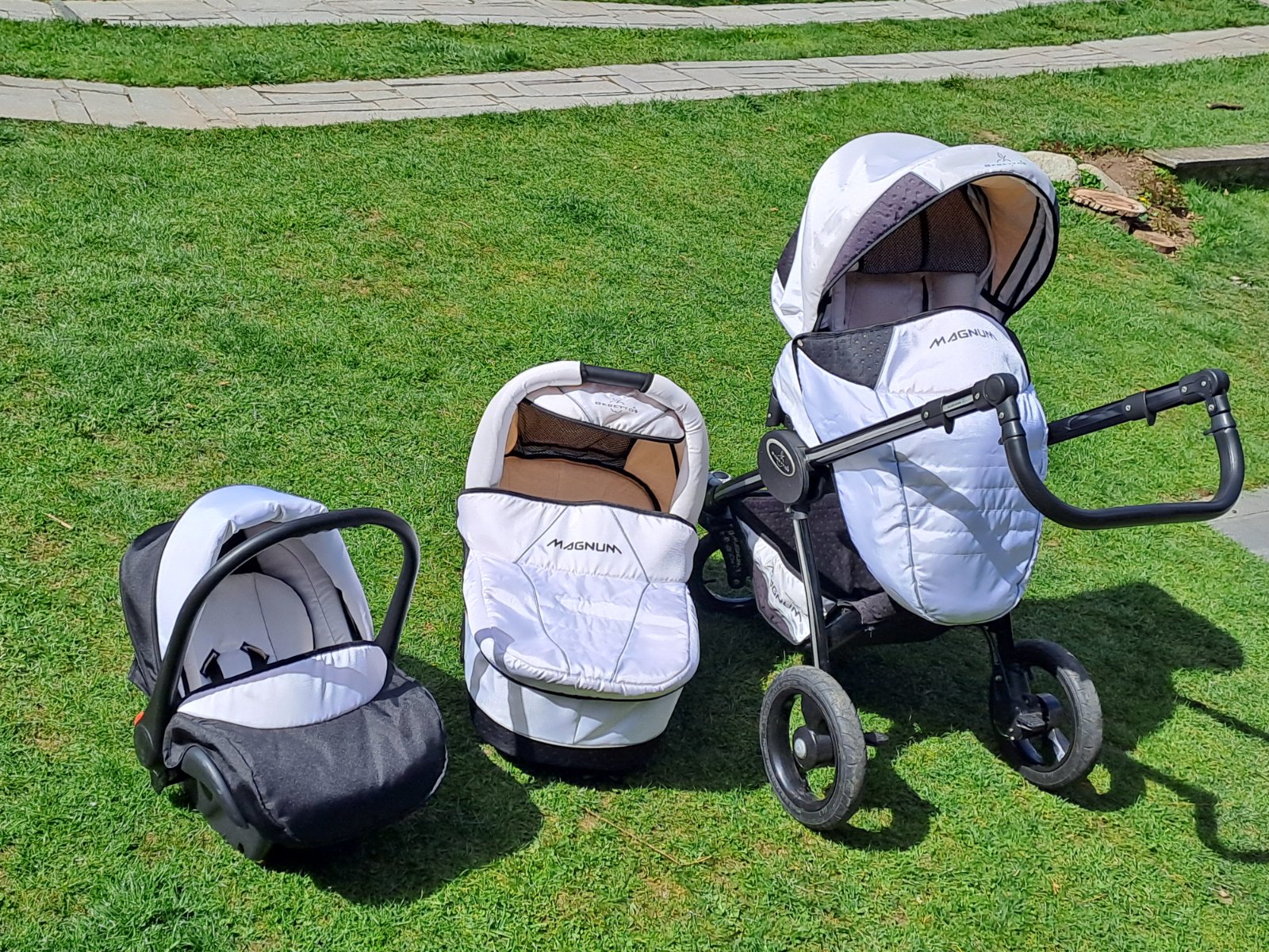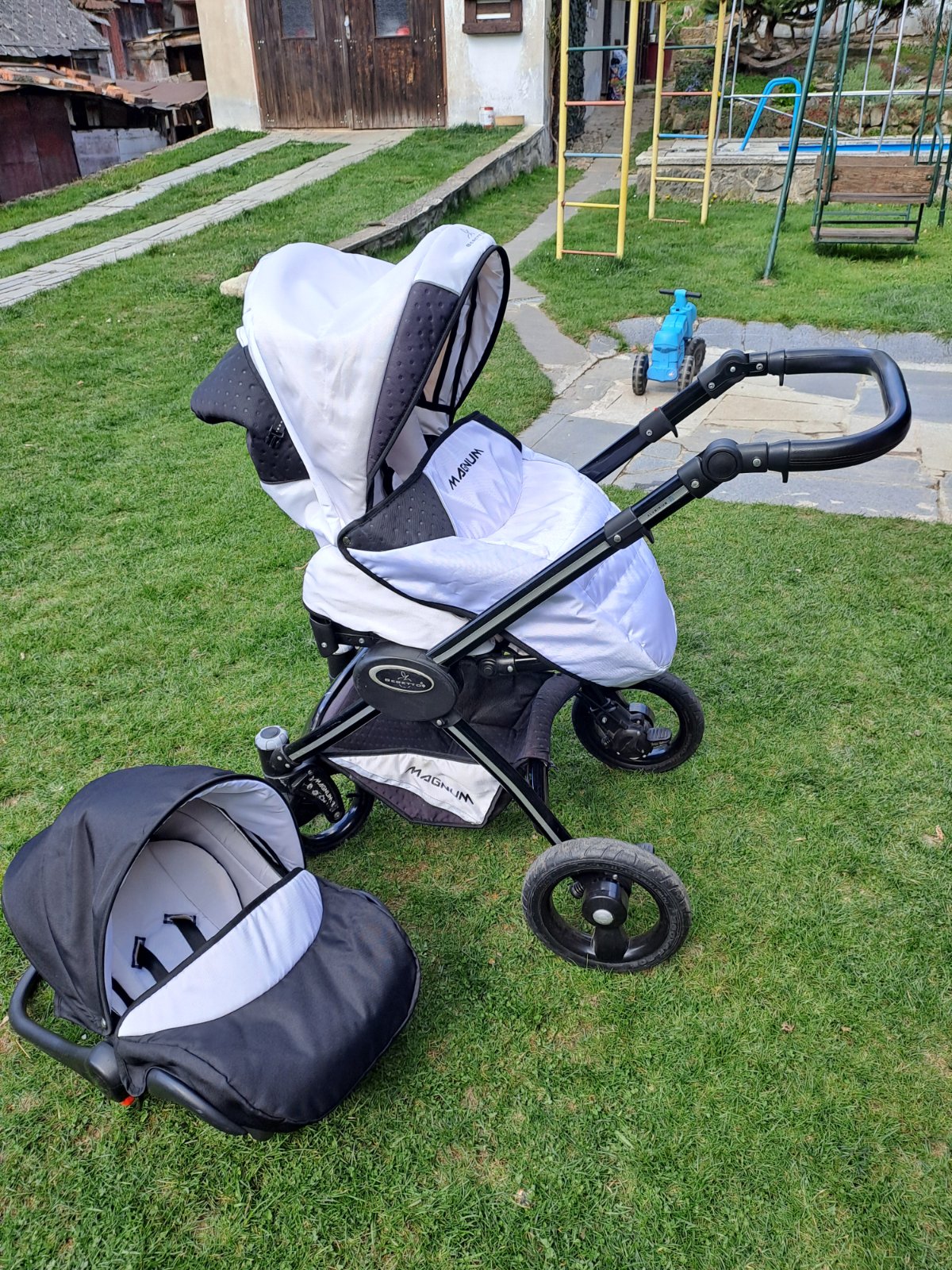 Predám trojkombináciu používaného ale zachovaného kočíka zn. Magnum. Obsahuje vajíčko,vaničku a športovú časť, súčasťou je aj taška a podsedák do auta grátis. Len osobný odber, okres Krupina.