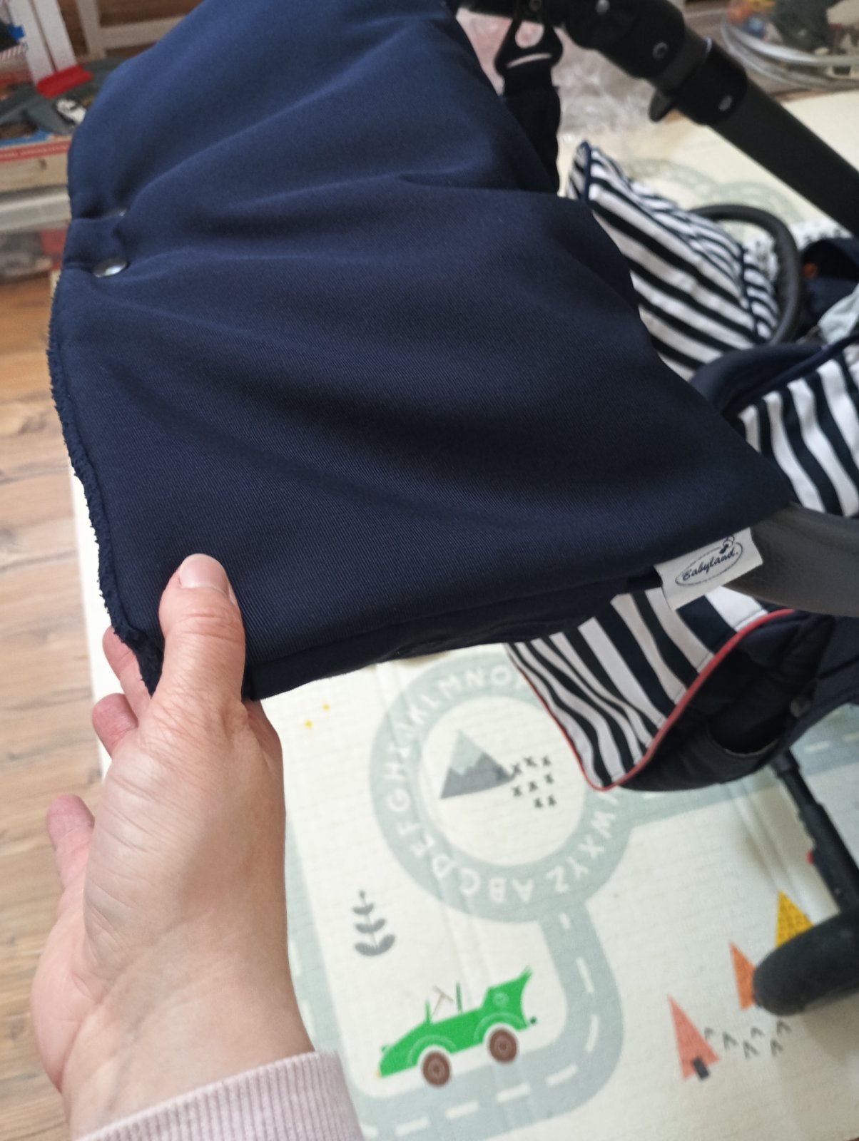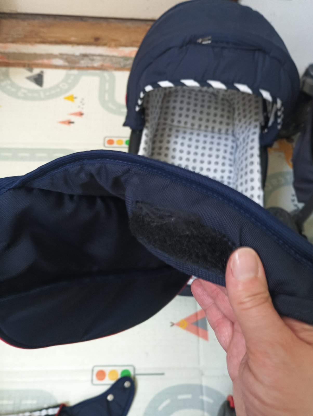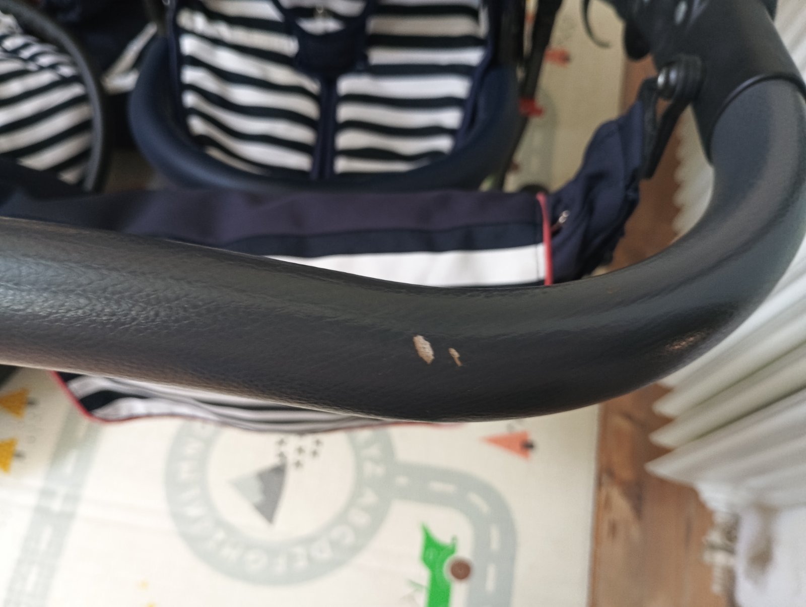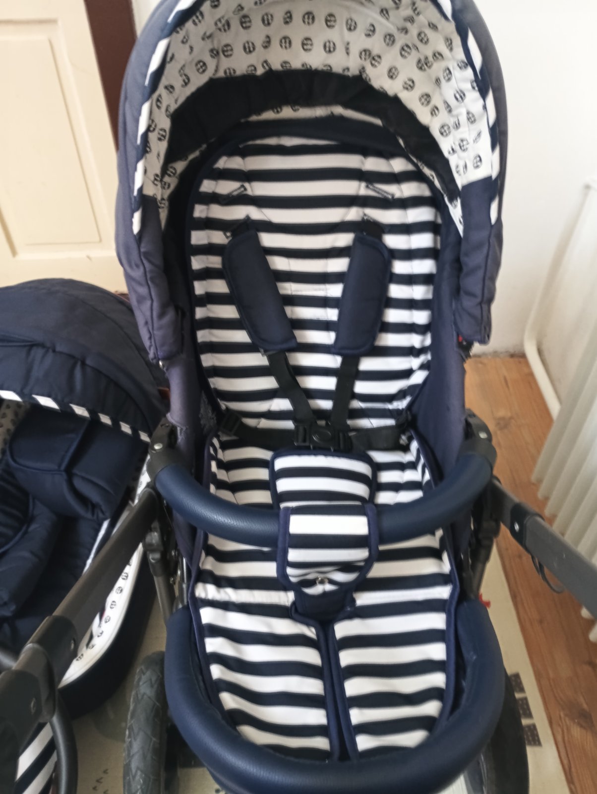 Posúvam 3kombinaciu kočíka Petite&Mars Go Navy Stripes, má už čo to odkocikovane ale určite ešte službu urobí, všetky poťahy sú komplet vyprane, na každú časť je nánožník, sieťka proti hmyzu, 2 slnečné clony, rukávnik na madlo aby Vám v zimnom období neodmrzli ruky, pohárik na napoj na konštrukciu, dofukane kolesá. Vady: škrabance na konštrukcii od nakladania do auta, vyblednuta strieška na športovej časti od slnka, vyblednuta prebaľovacia taška. Inak žiadne funkčné nedostatky.