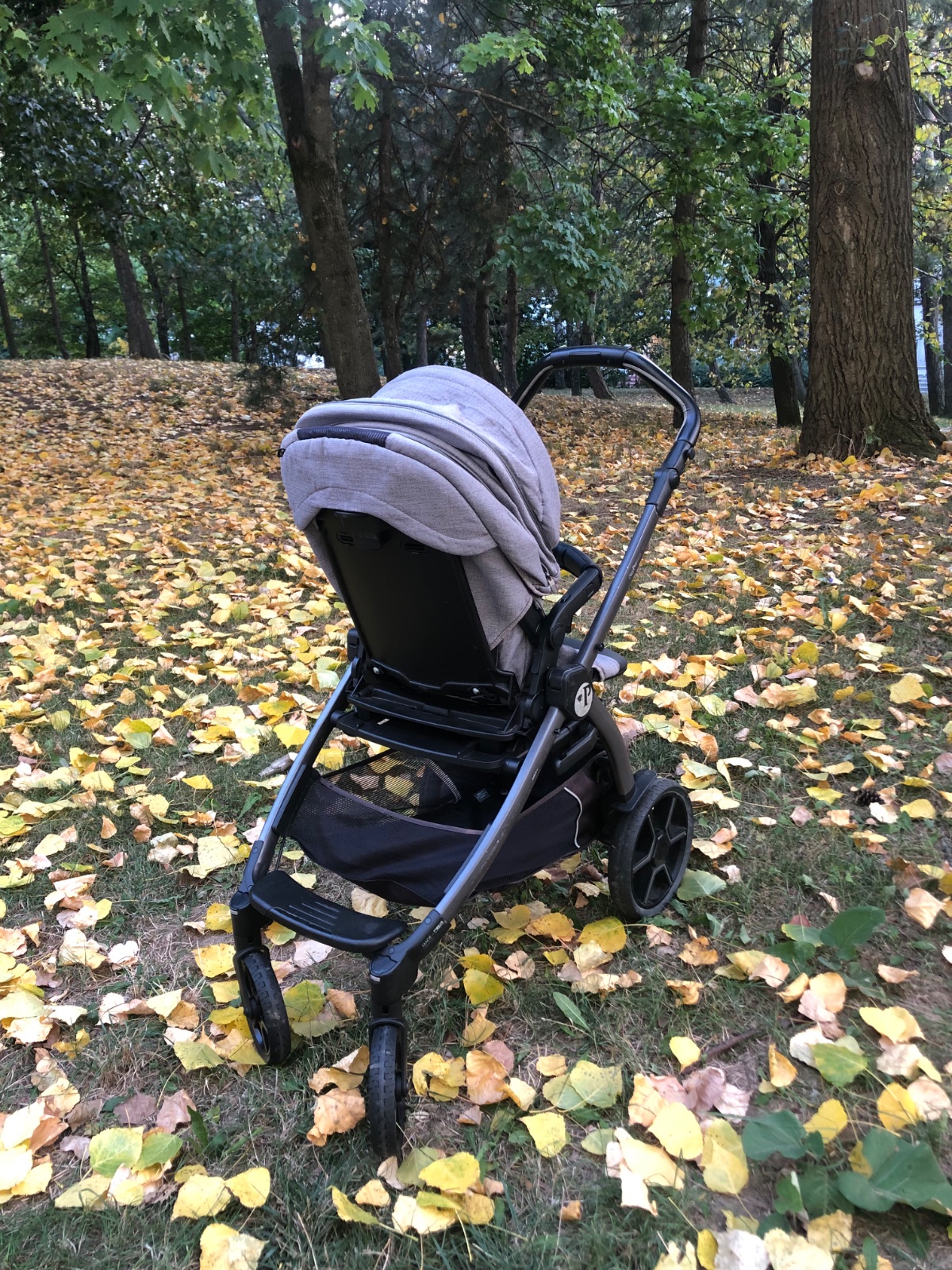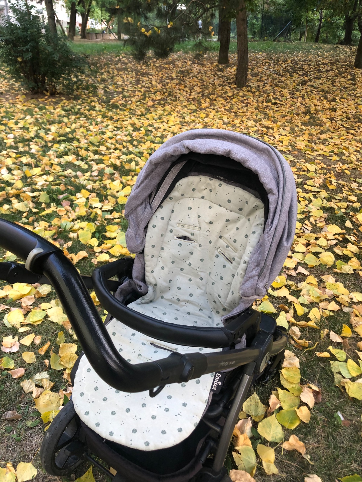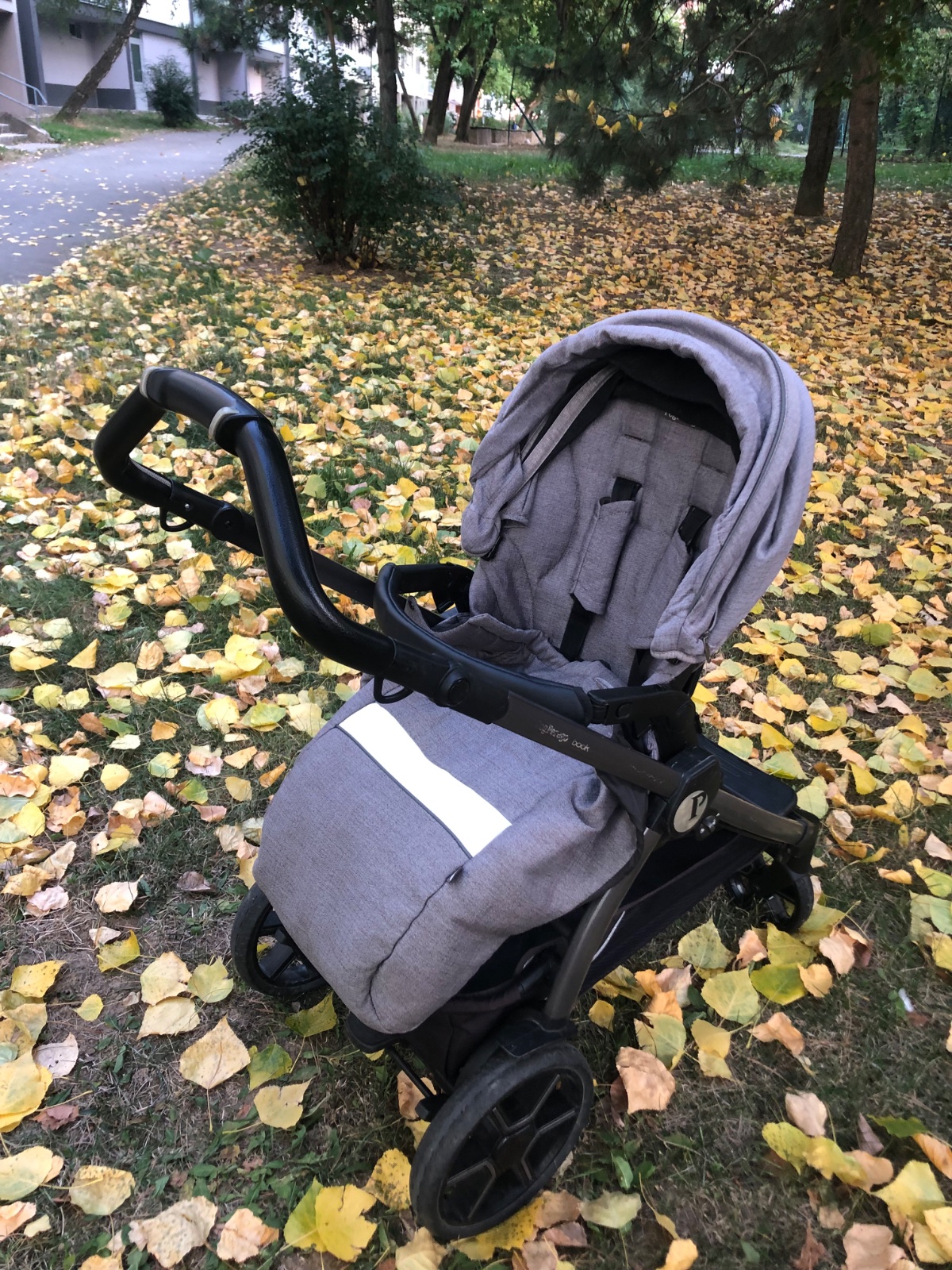 Ľahký, elegantný športový kočiar po jednom dieťati s kolesami soft ride, predné kolesá sú dokupované úplne nové, ešte nepoužívané. Veľkou výhodou je jednoduché skladanie kočiara, aretácia predných kolies a stiahnuteľná strieška, ktorá sa dá pri rozzipsovaní stiahnuť až takmer k madlu. S kočiarom predávame nánožník, obal proti dažďu a textilnú podložku. Kočiar má bežne známky opotrebovania, na konštrukcii vidieť zopár škrabancov a spodný úložný priestor bol opravovaný (šitím).