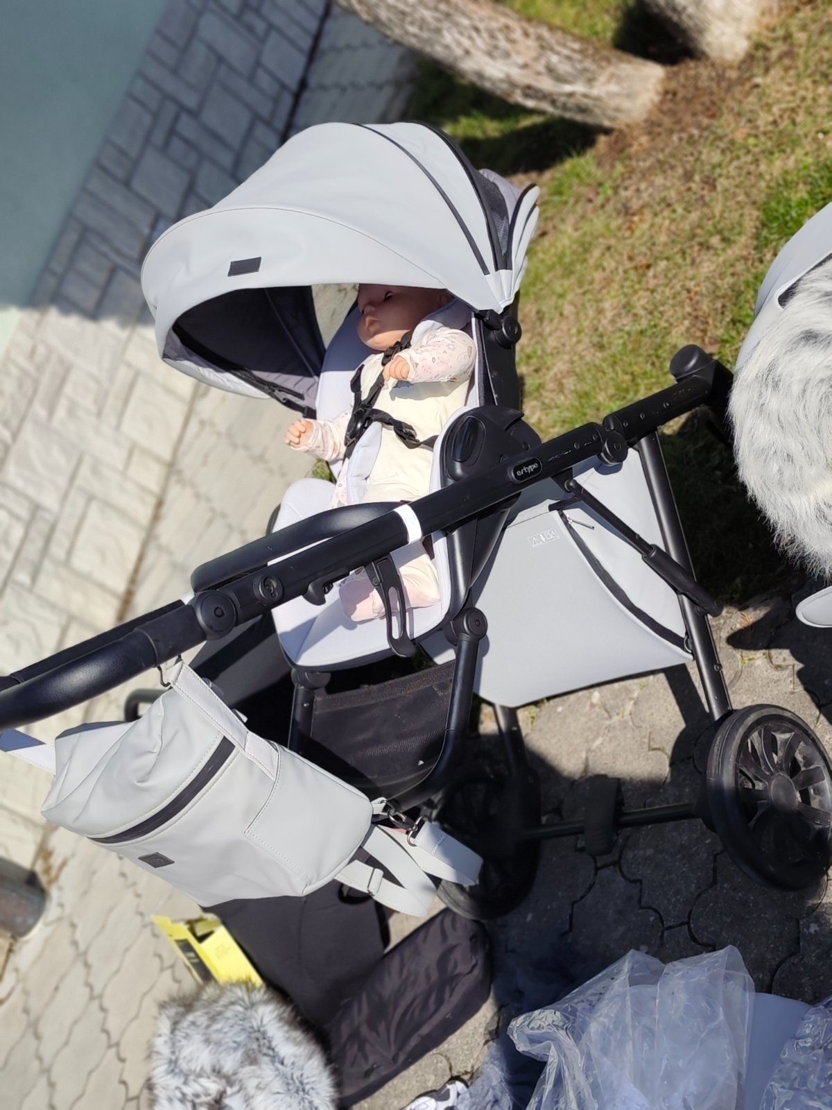 Tento kocar je z Eko koze, posobi velmi elegantne. Aj ked zmokne iba ho pretriete a je suchy. Skladovany bol v interieri.Kocar ma aj v strieske sietku-na prefukovanie.Predne kolieska sa otacaju 360°, daju sa zacvaknut do 1 polohy. Spodny kos je uzatvaratelny na zips-nenaprsi don ;) Na kocari su reflexne prvky v striebornej farbe. Sportova cast ma plochu na nohy plastovu-nespini sa textilna cast. Nastavitelne madlo do viacerych poloh. Kocik je odpruzeny.Odvetrane dno hlbokej casti.