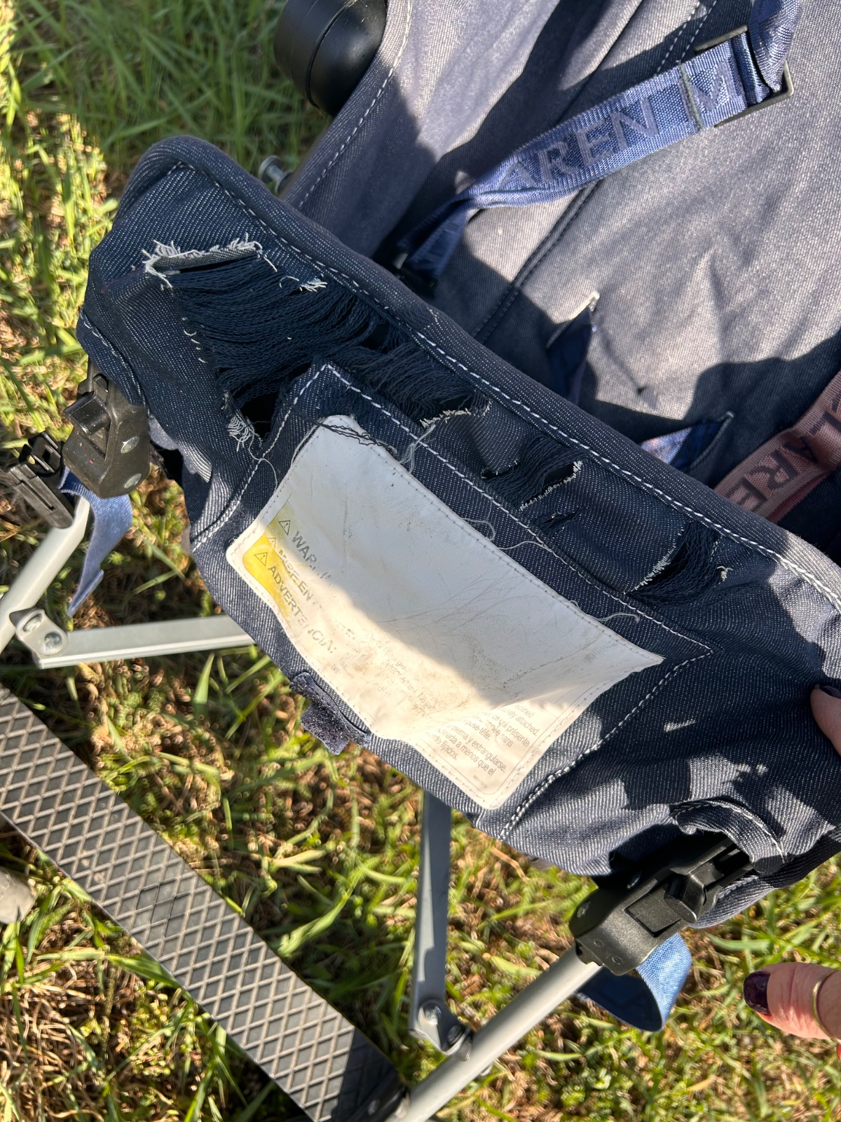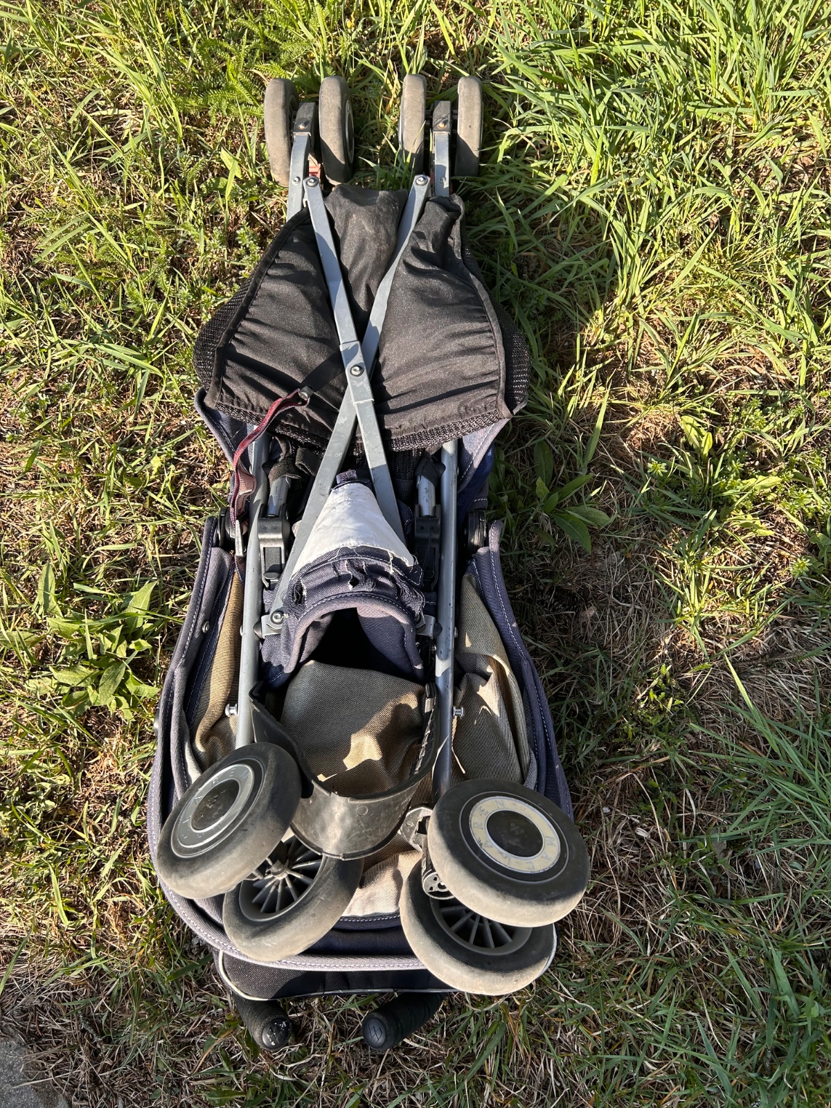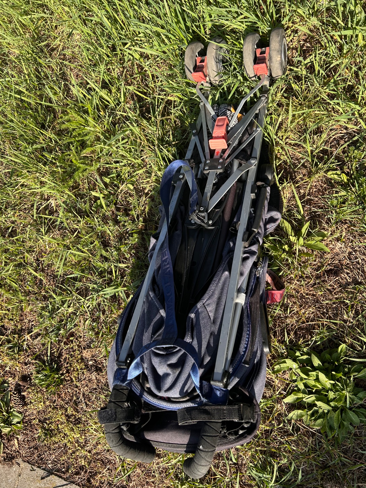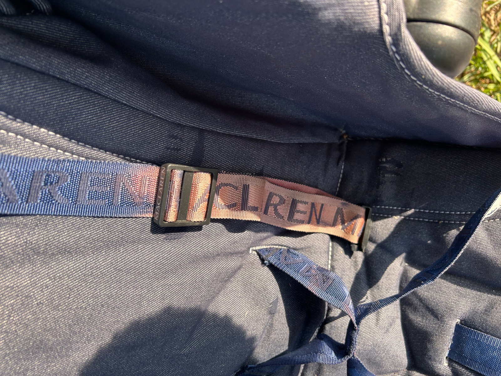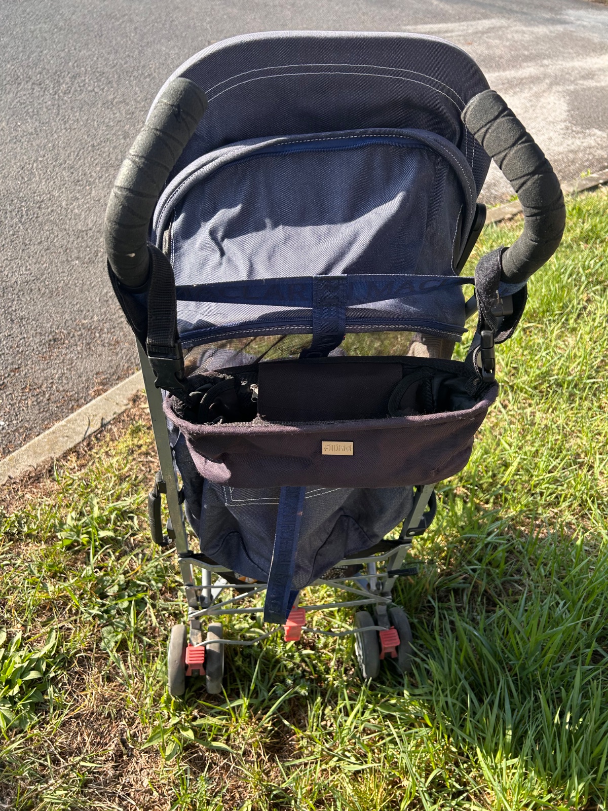 MacLaren Quest v denim/modrej farbe , ľahký golfový/skladací typ s veľkou strieškou, polohovateľným sedadlom (do ľahu), hliníkovým rámom a klasickým dizajnom značky MacLaren. Ide o obľúbený kompaktnejší model vhodný od cca 6 mesiacov, ľahko skladateľný jednou rukou, s dobrou strieškou a nosnosťou do cca 25 kg. Kočík má hmotnosť 5,9 kg preto sme ho kupovali na dovolenku. Má pár chýb, ktoré nebránia funkčnosti a dokoca ich viac menej nevidno okrem sfarbeného pasu. Kočík má vo výbave aj originál pláštenku proti daždu.