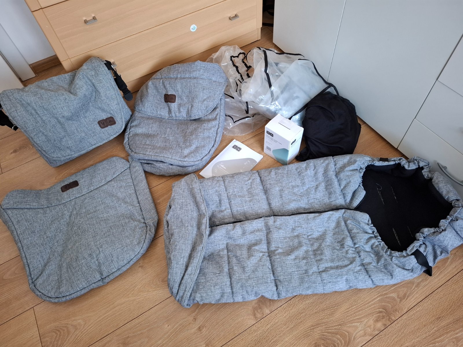 K tomu taska, nanoznik na hlboku cast a sportovu cast, plastenka 2x, sietka, zimny fusak rovnakej znacky a otien, izofix na vajicko do auta.
