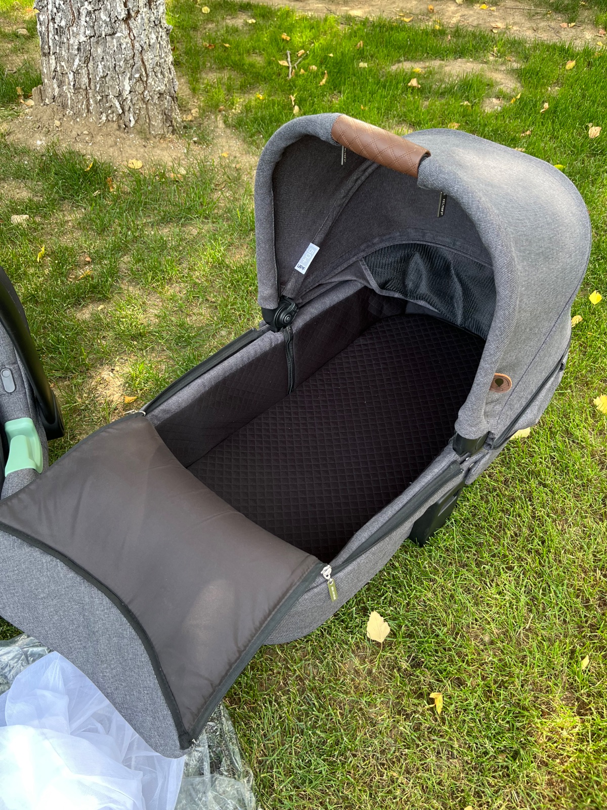 Kočík je vo veľmi dobrom stave, kupovaný v roku 2021, po dvoch deťoch, nič nevŕzga, keďže konštrukcia je kovová a fakt pevná. Prejde akýkoľvek terén, má nafukovacie kolieska, je odpružený. Predávam spolu so slnečníkom, pláštenkou do dažďa, sieťkou proti hmyzu, držiakom na nápoje a nánožníkom. Vanička je priestranná, bábätko v nej vydrží dlho. Športová časť otočná v oboch smeroch, polohovanie do sedu, poloľahu a úplne ležmo. Vajíčko nebolo takmer vôbec využívané. Má bežné znaky používania - škrabance na konštrukcii. Madlá sú kožené, nepopraskané.