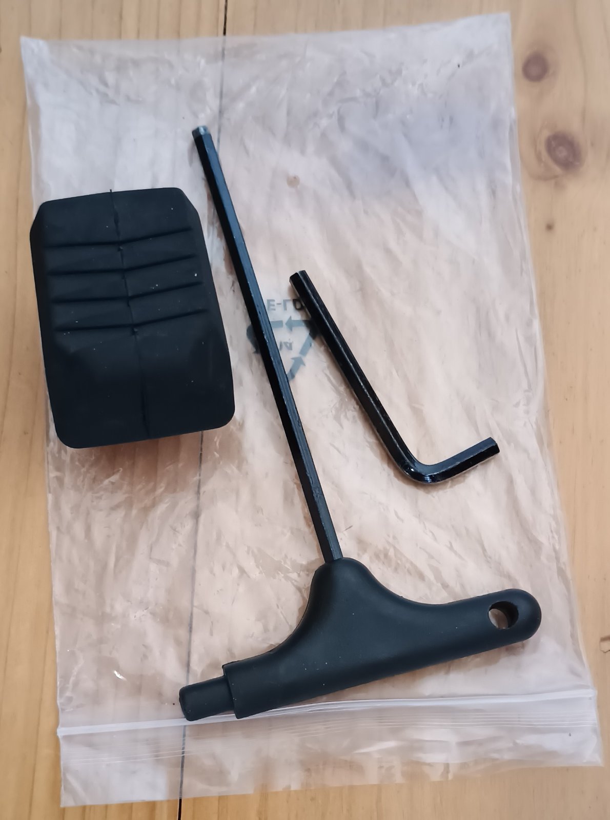 Originál balenie, návod. Náhradná brzda a kľúče.