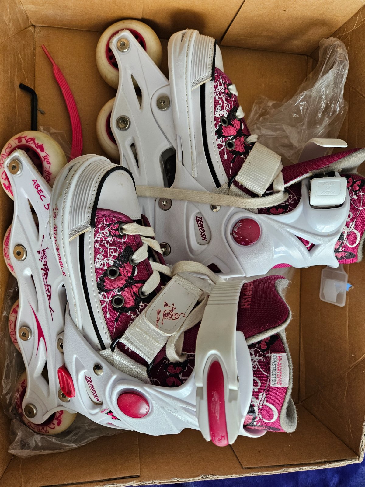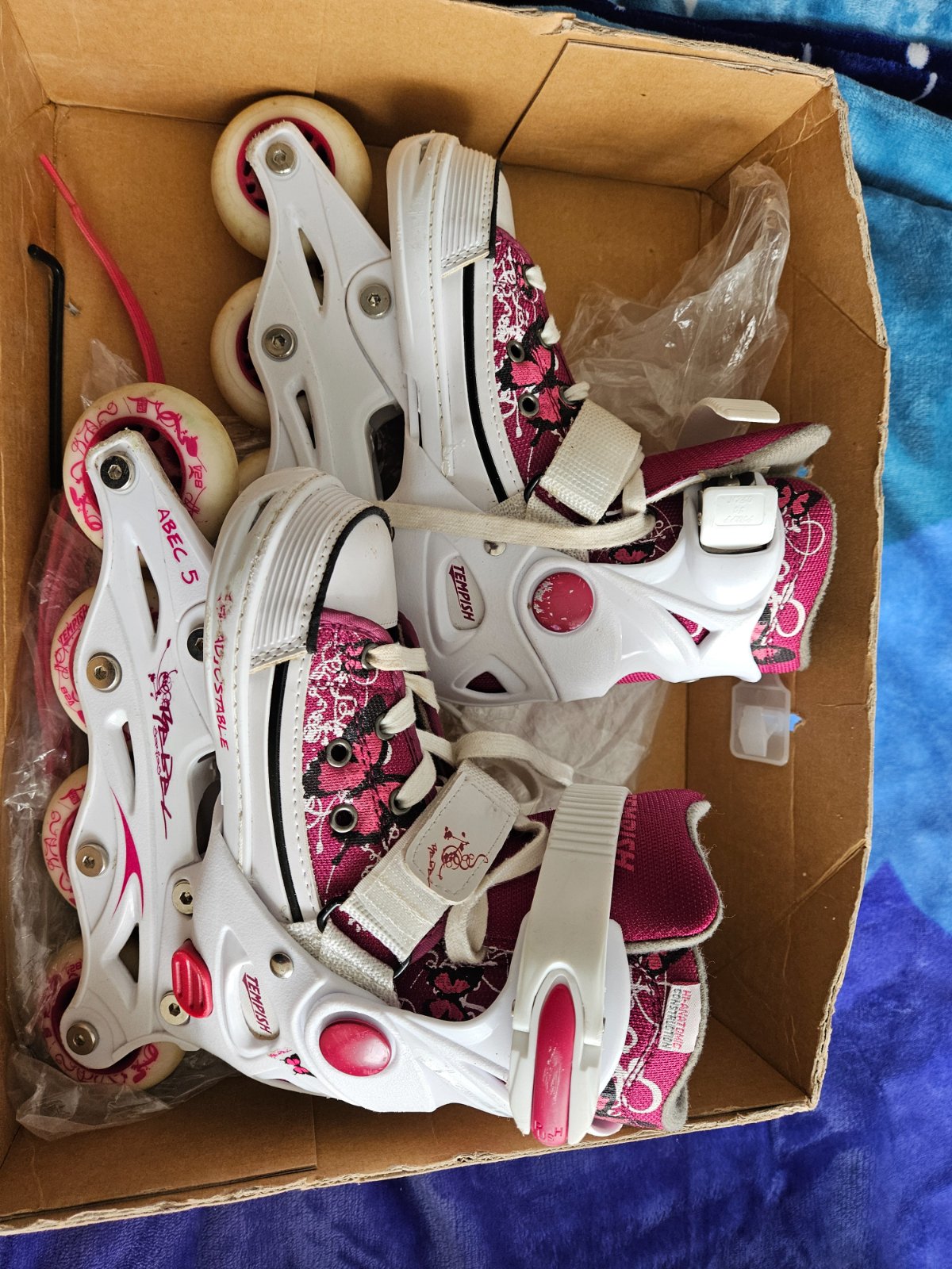 Korčule sú nastaviteľné vo veľkostiach 29 - 33. Ložiská ABEC 5, kolieska 80 mm. Boli aktívne používané, takže majú škrabance , vid foto, no sú v dobrom stave. Kolieska pri jazde blikaju. Prikladám...