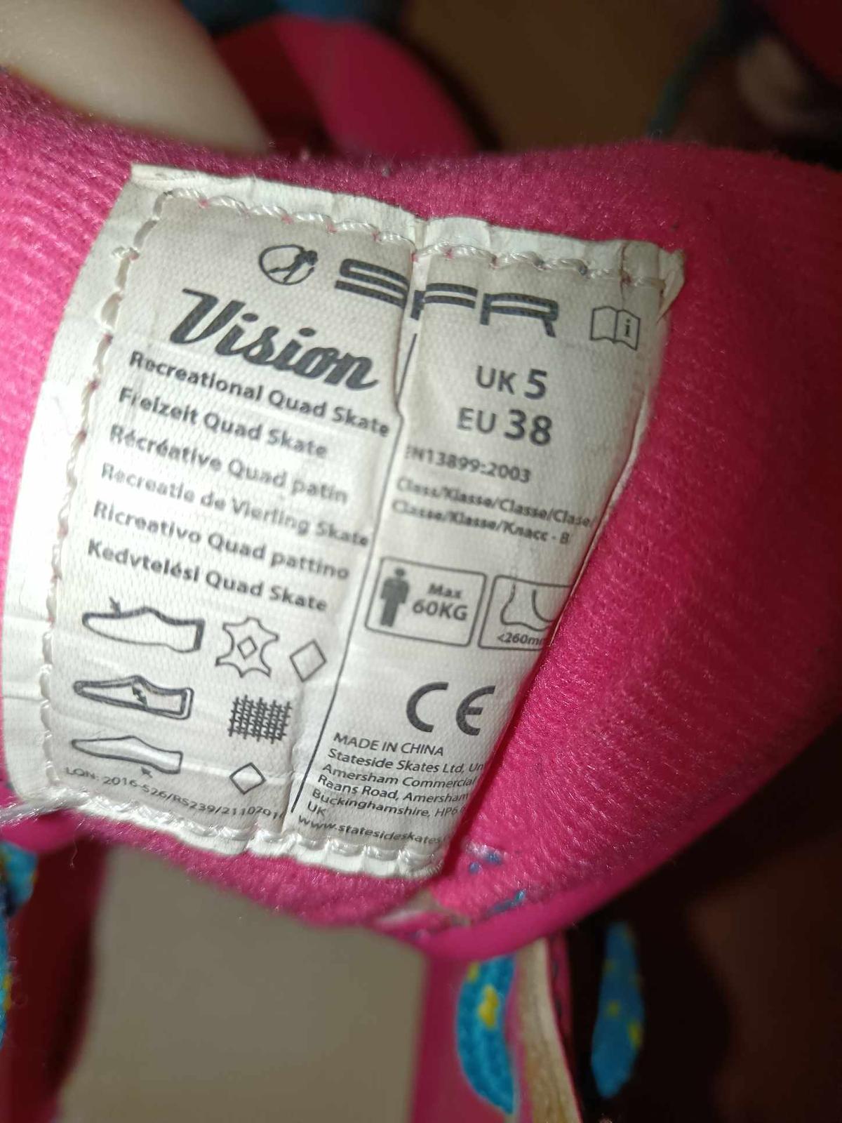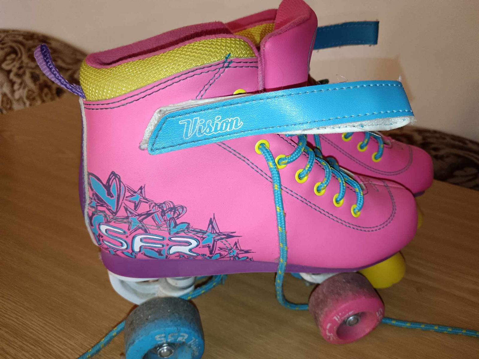 Posúvam po dcére, kupované nové v máji minulého roku k narodeninám, prudko jej vyrástla noha. Použité párkrát čo vidno aj na fotkách. Nastaviteľné 36,5-40,5 TOP stav