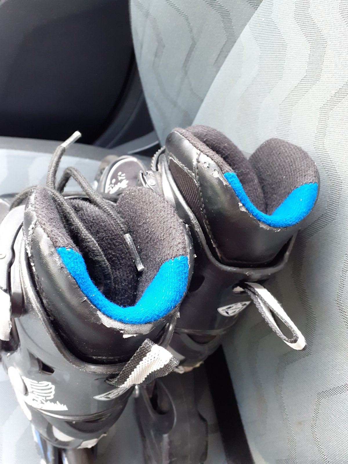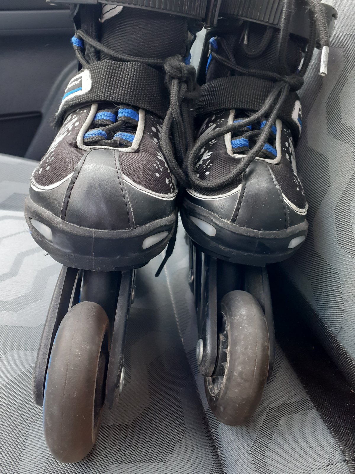 Nastaviteľné korčule, v dobrom stave, akurát vrchná časť sa olupuje, inak funkčné, myslím, že ešte aj blikajú