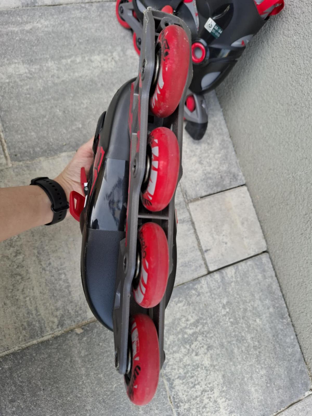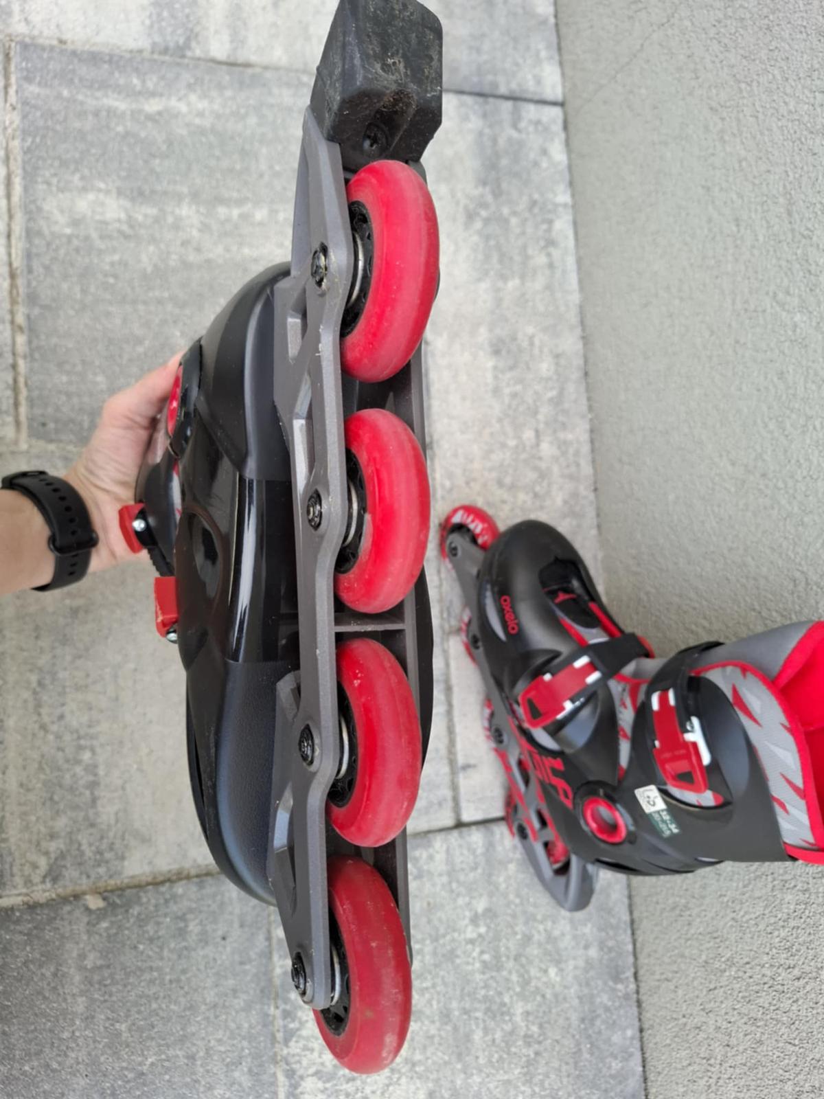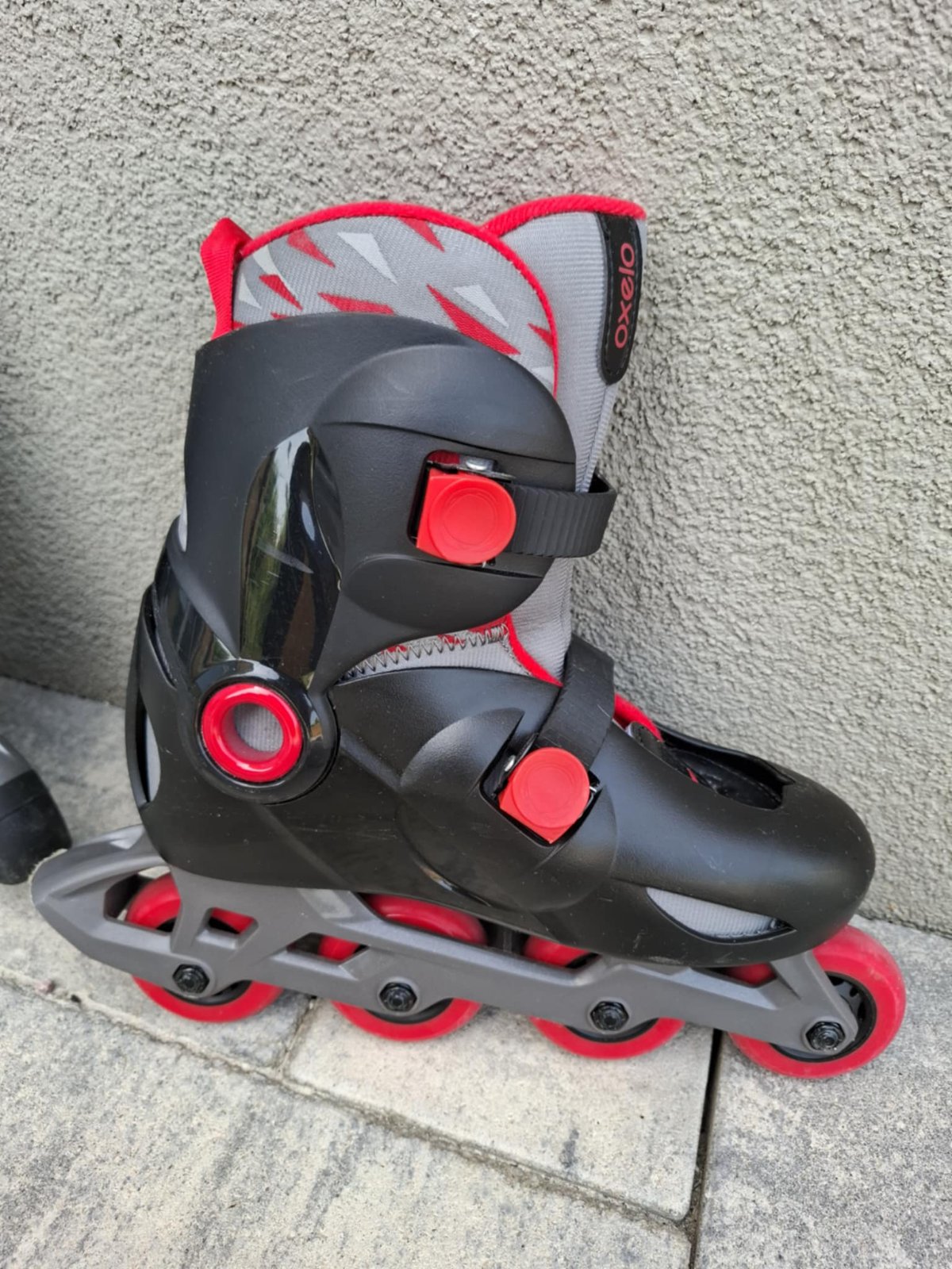 Predam kolieskove korcule znacky Oxelo vo velkosti 32 az 34 (korcule sa daju nastavit v 3 velkostiach, rastu s detskou nohou). Pouzivane boli minimalne, javia mierne znamky pouzivania - vid. foto.
