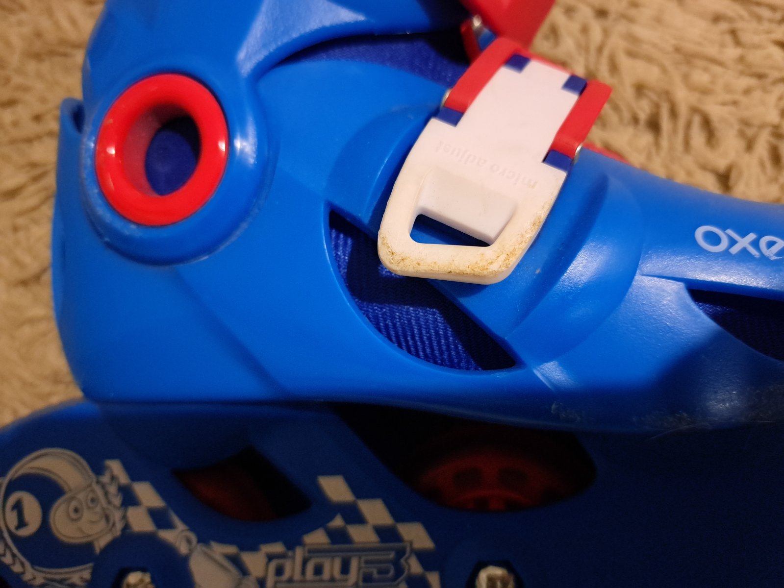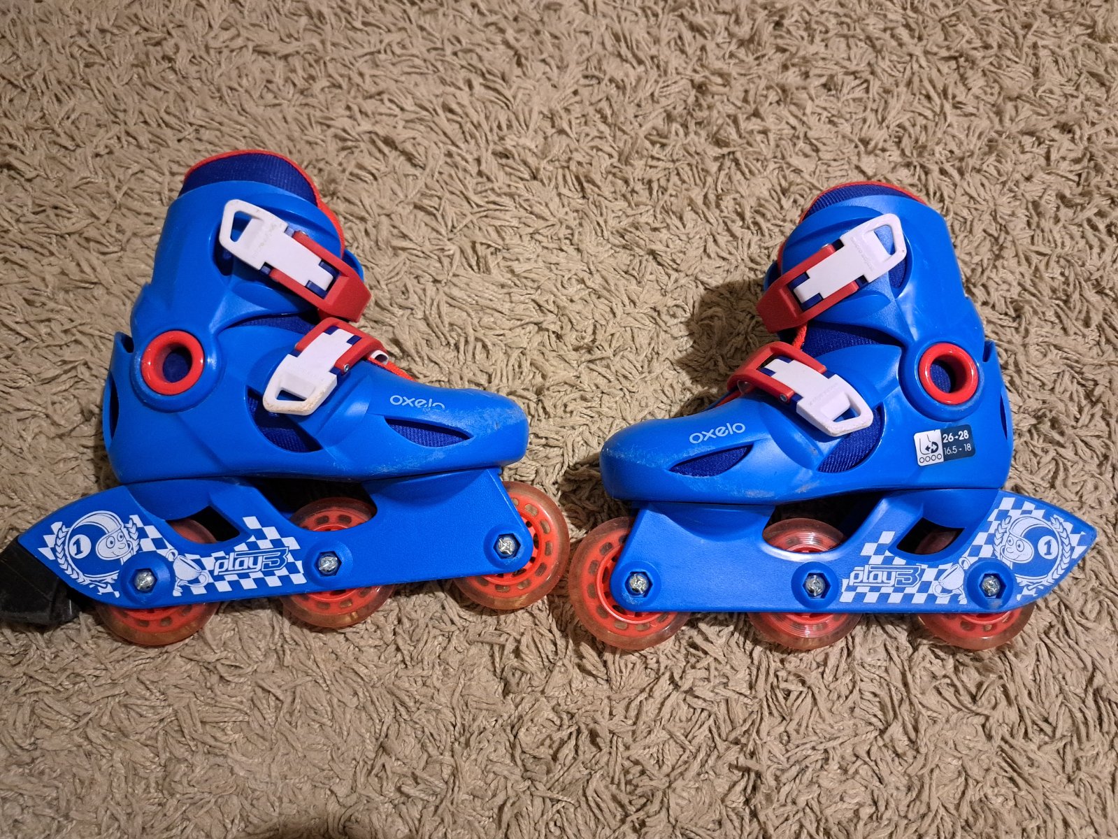 Predám kolieskové korčule detské, známky používania- škrabance viď. foto, keďže to boli naše prvé korčule a syn sa na nich učil jazdiť, inak plne funkčné, veľkosť 26-28. https://www.decathlon.sk/p/134505-461-detske-korcule-play3-modro-cervene.html