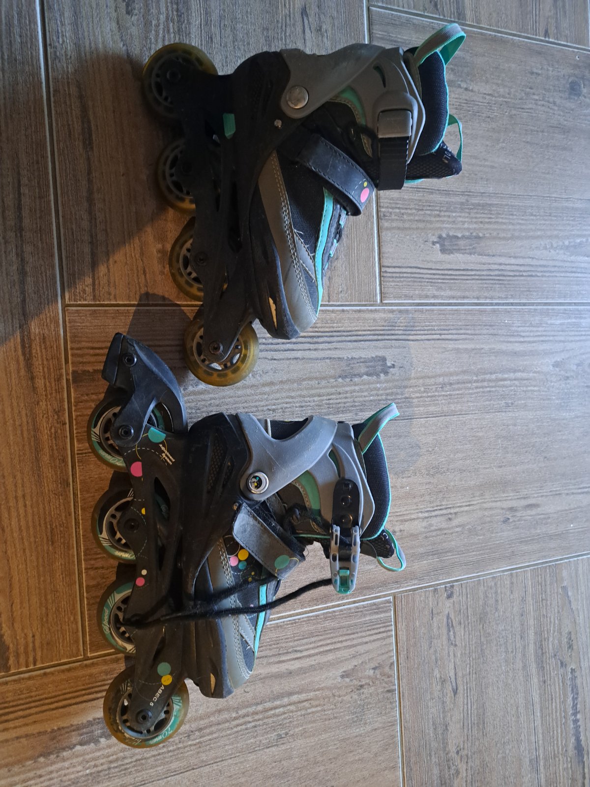 Univerzálne korčule (kolieska, nože). Veľkosť nastavenia 33-36 . V predu šuchnuté. Len osobný odber.