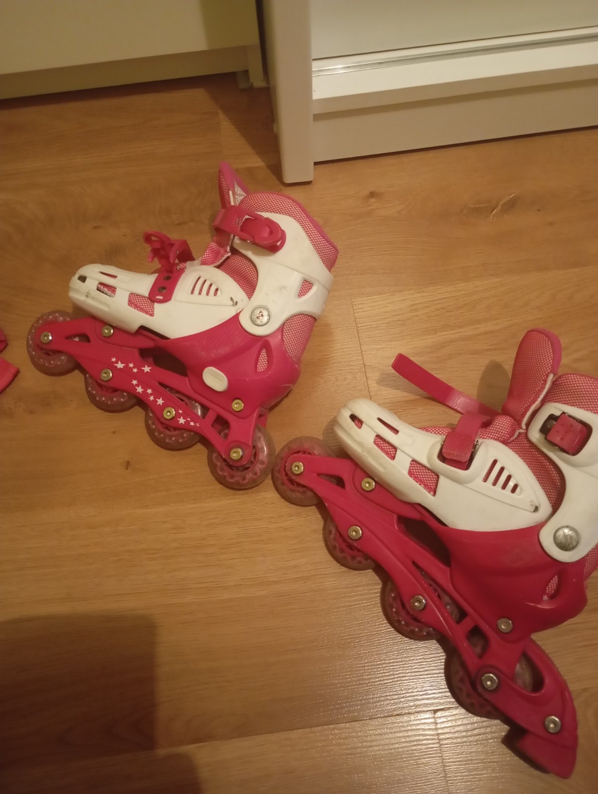 Ponúkam používané korčule kupované v Lidli, miestami vidno znaky používania, cena symbolická 5€. Nastaviteľné od c. 32 do 35.