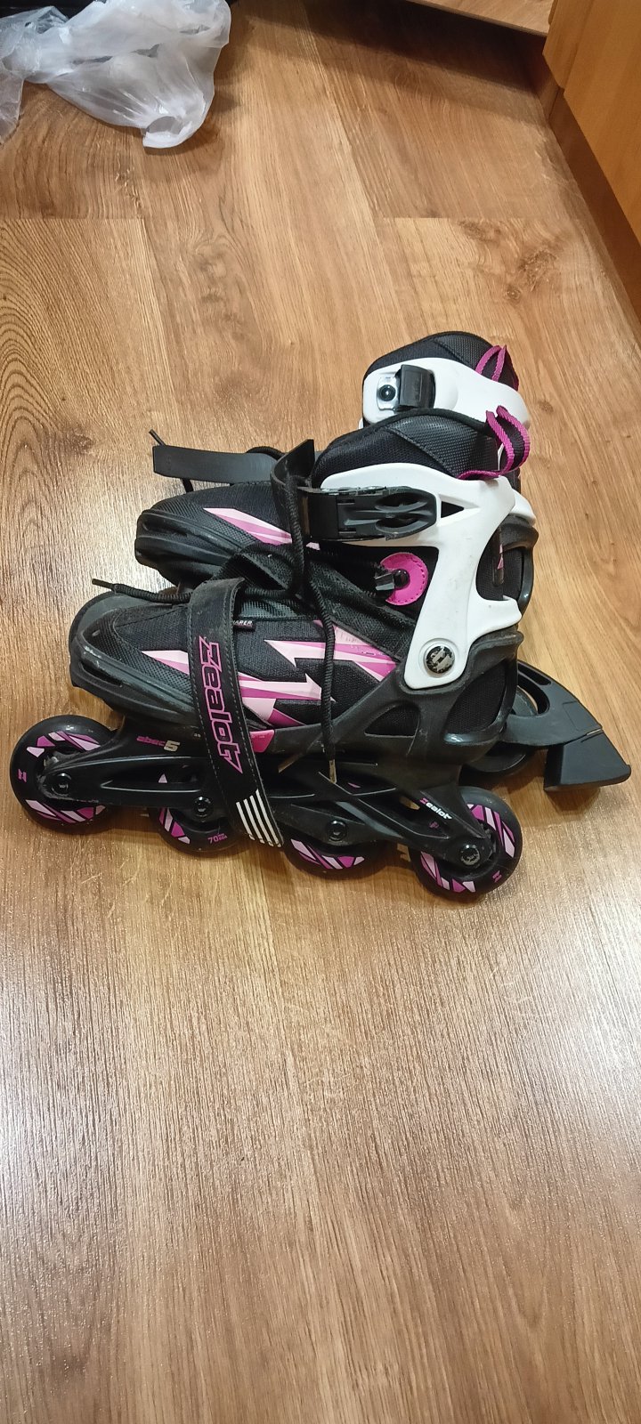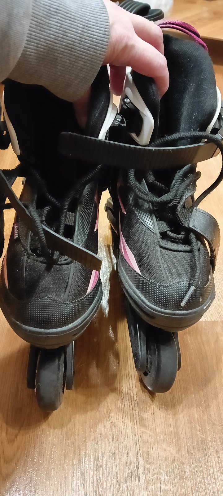 Krásne, kvalitné in-line korčule, párkrát použité, nastaviteľná veľkosť 32-35, výborný stav, vid foto.