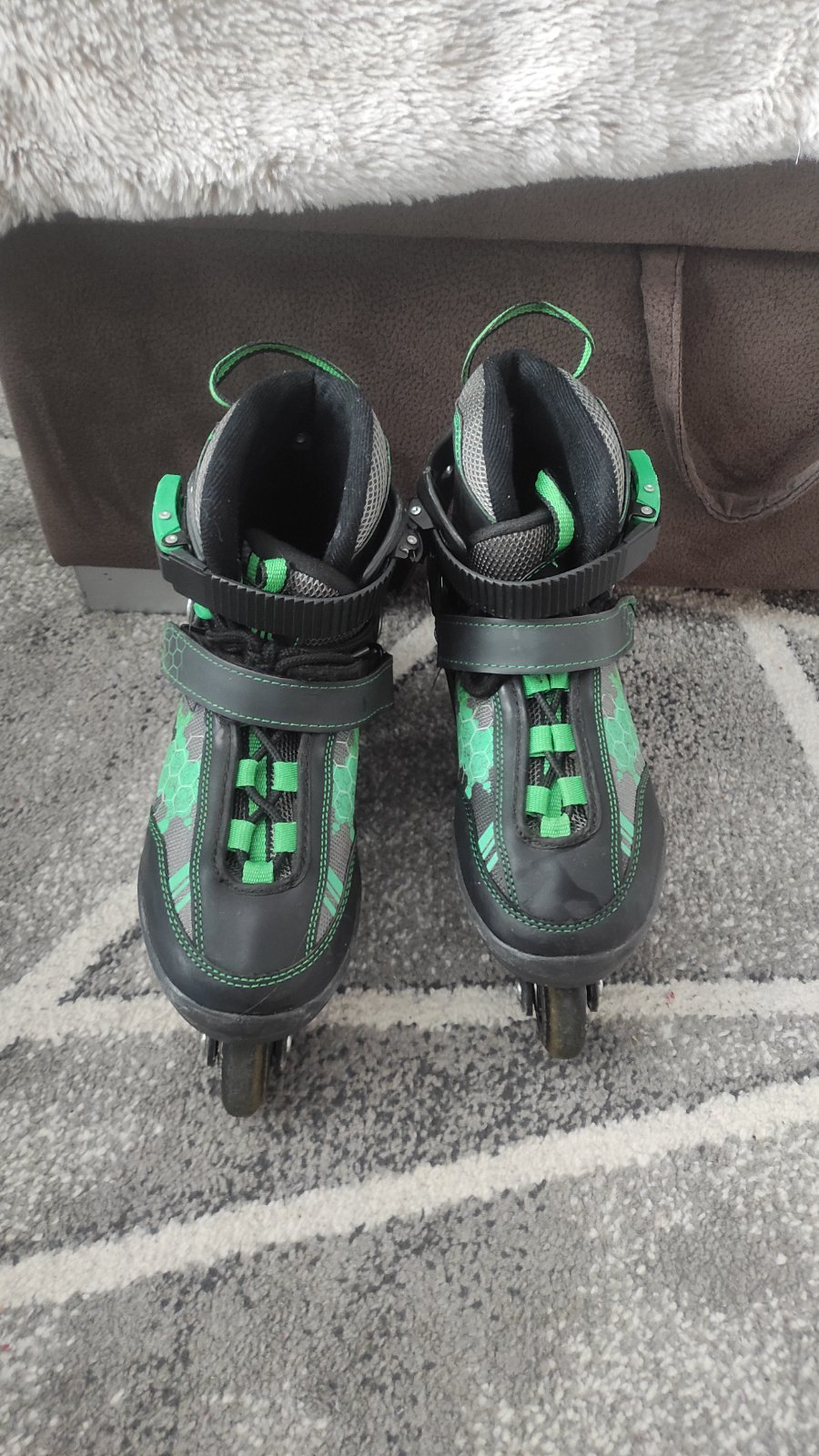 Nastaviteľné kolieskové korčule. Veľkosť 32 až 36. Trošku ošúchané/viď toto/. Inak nezávadné