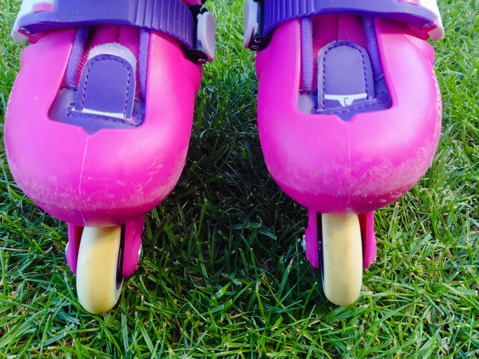 Jedno leto používané korčule na naučenie-majú pár škrabancov,ale fungujú. Veľkosť sa dá nastavovať 26-28 (16-18cm). Dajú sa maniť z jednoradových na dvojradové.