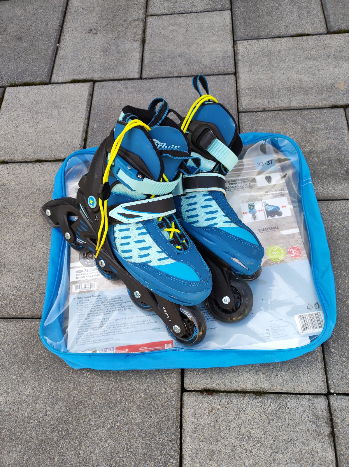 Predám detské kolieskové korčule. Patentovaný systém nastavenia šírky a dĺžky na základe 5 veľkostií. Optimálny, tichý chod vďaka kolieskami High-Rebound (72mm/82 A) s kvalitnými chrómovými ložiskami ABEC-7.