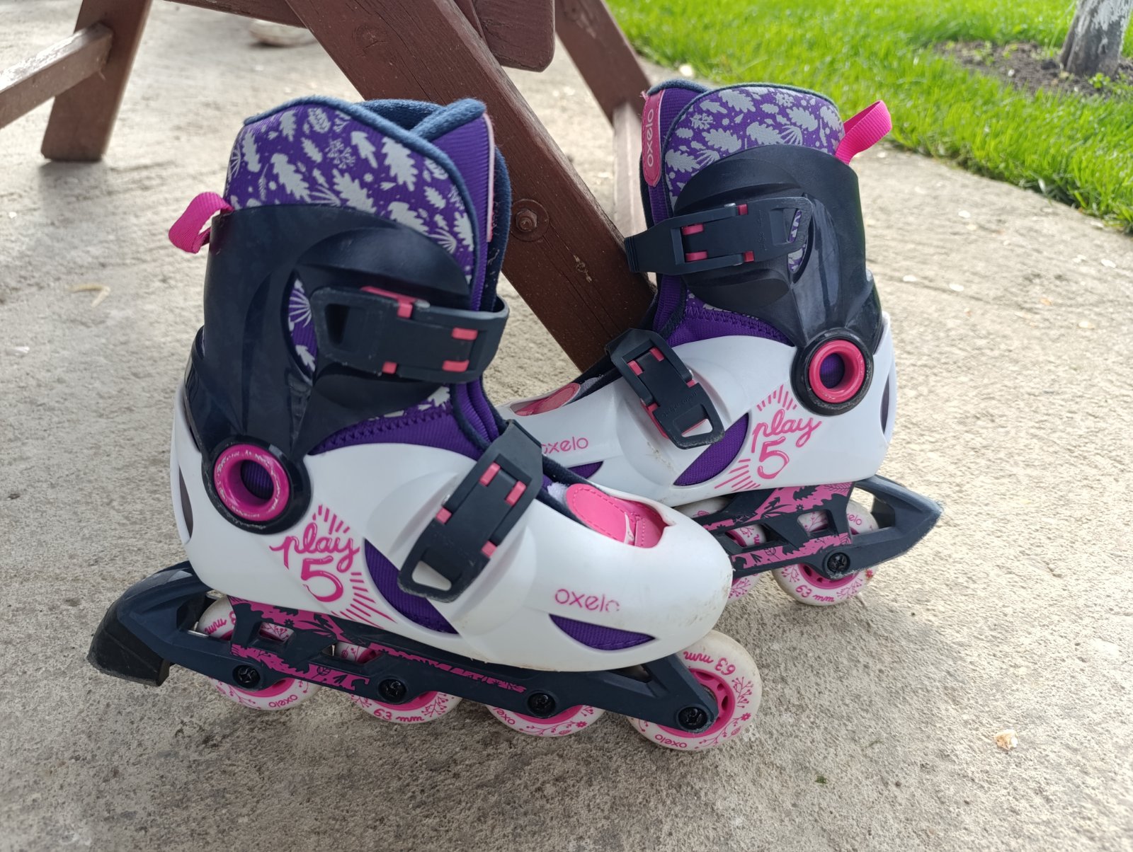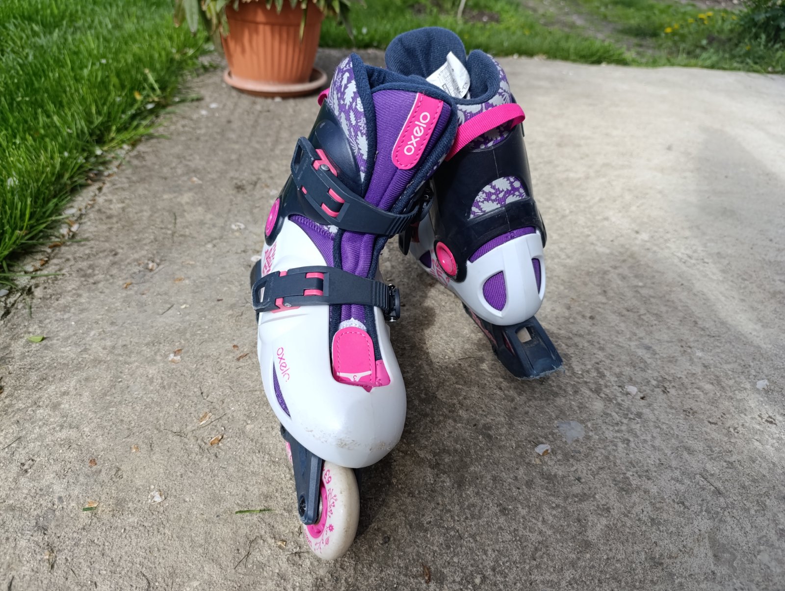Zachovale, nastavitelne kolieskove korcule pre male slecny. Velkost 30-33. Vsetko funkcne, v poriadku. Aj nastavovanie dlzky, aj suche zipsy lepia, aj to upinanie. Akurat brzda je uz trochu osuchan...
