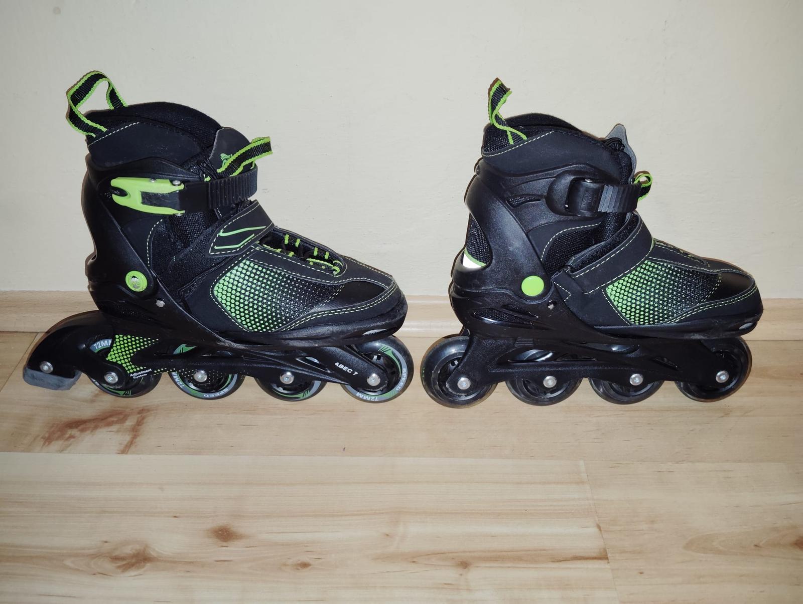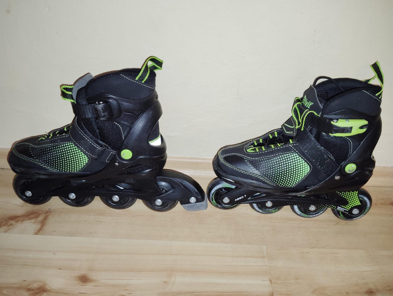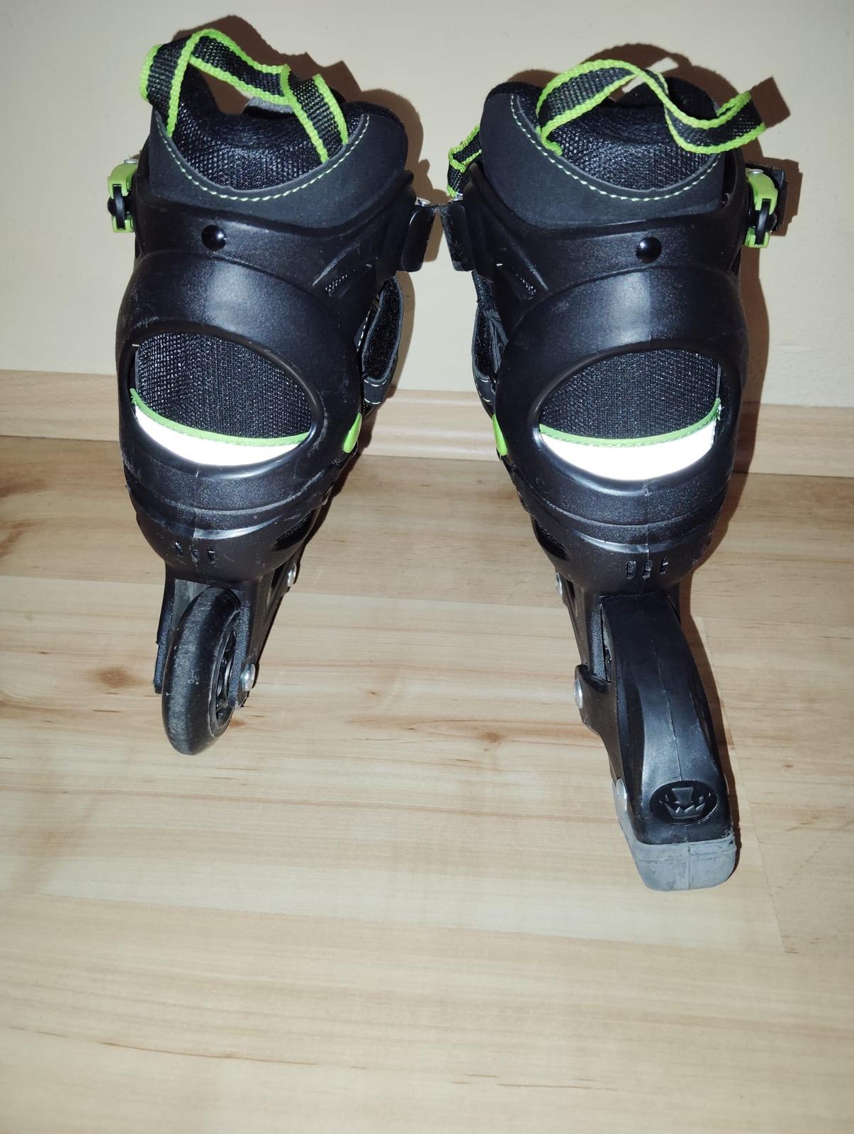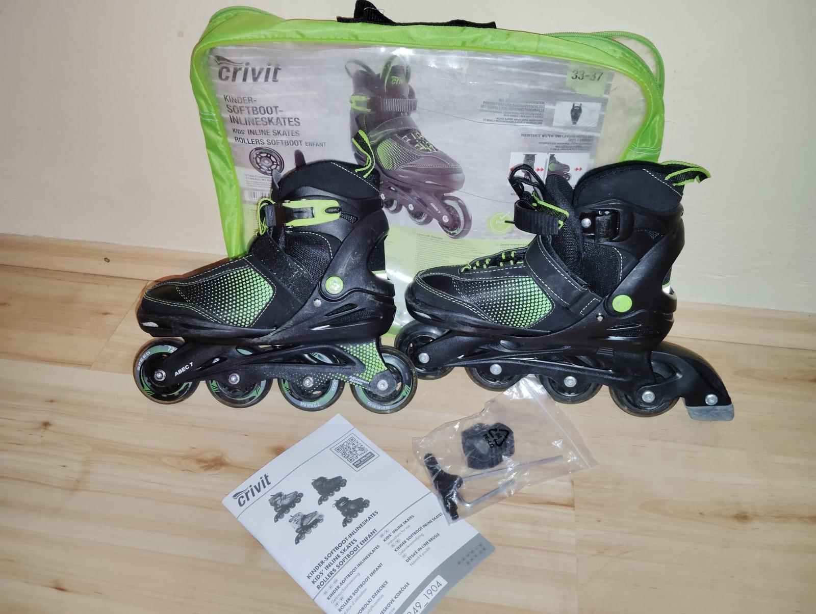 málo používané kolieskové in-line kolieskové korčule, značka Crivit, nastaviteľné 33-37.
