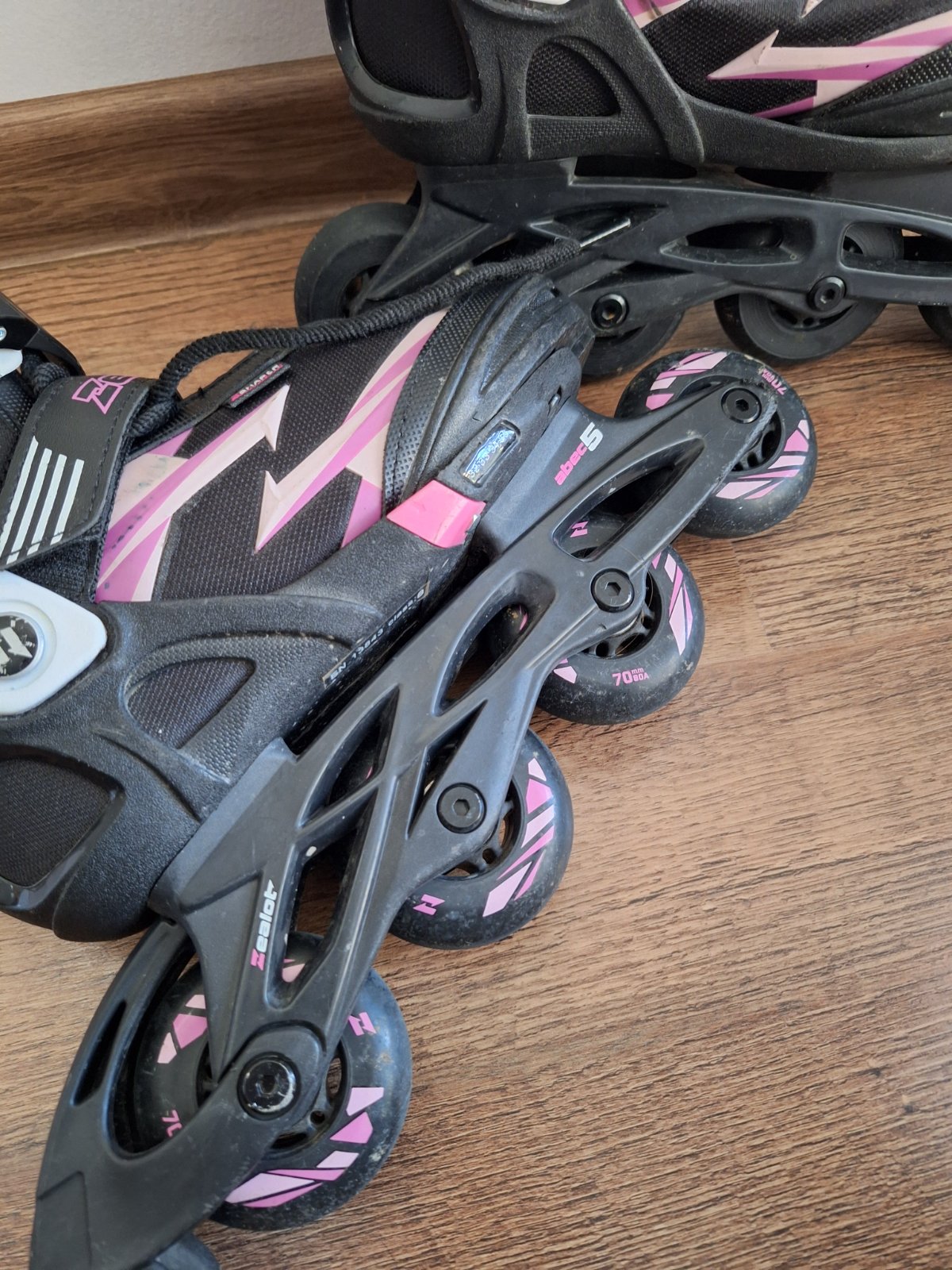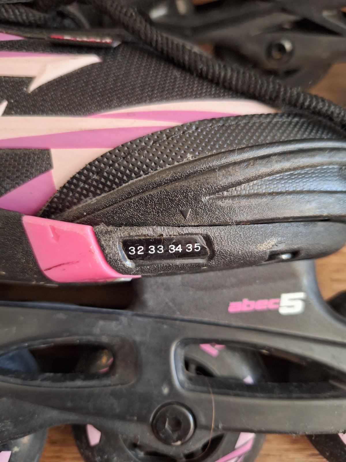 Krásne, kvalitné in-line korčule, párkrát použité, nastaviteľná veľkosť 32-35, výborný stav, vid foto.
