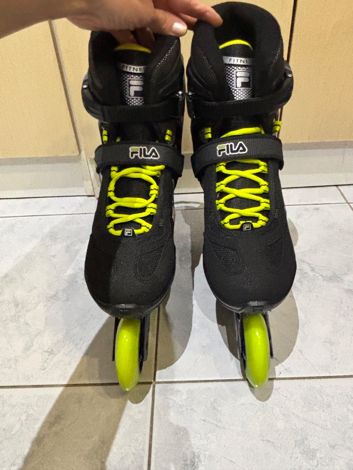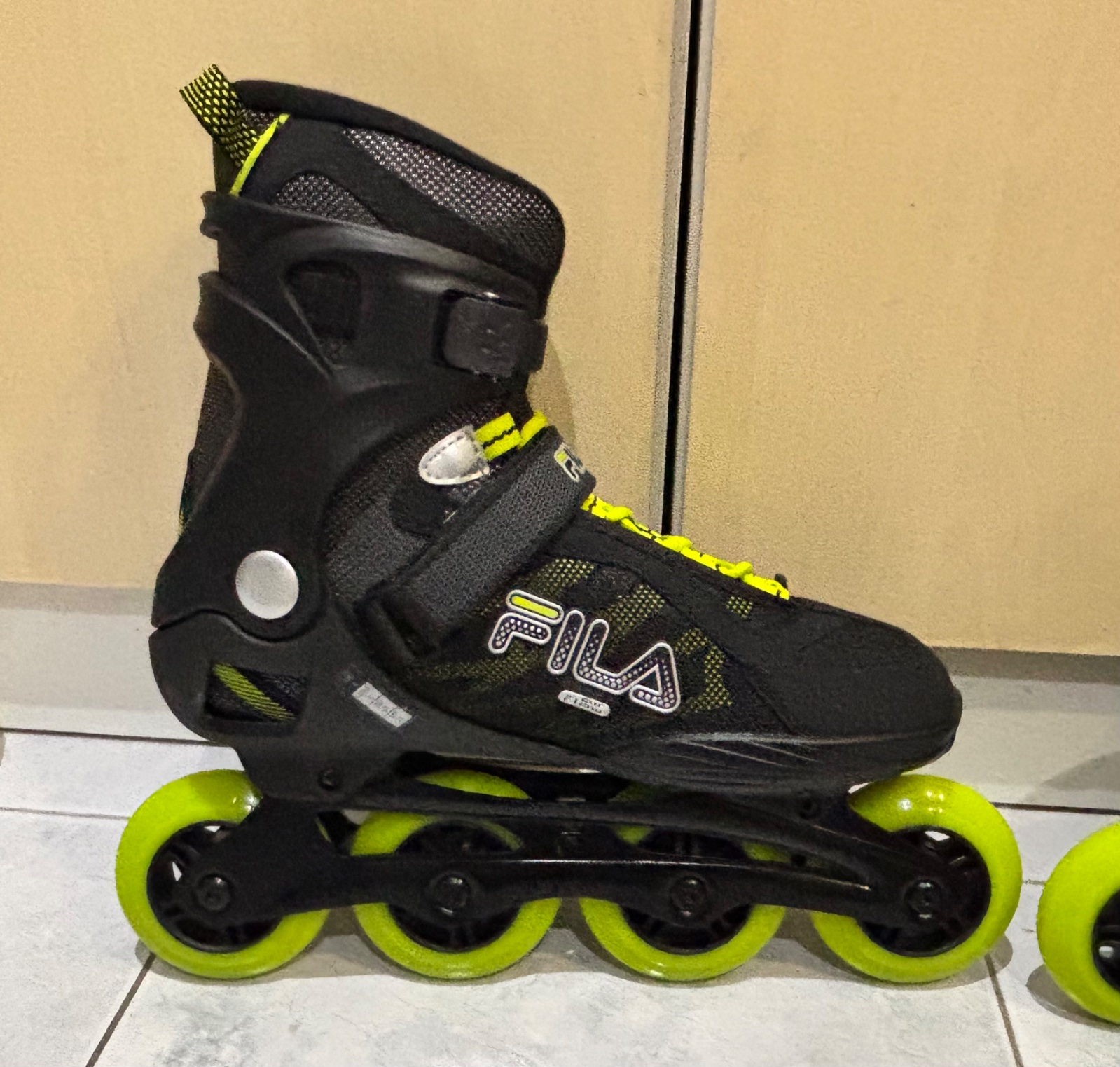 Panske kolieskove korcule znacky Fila velkost 42. V dobrom stave. Farba cierna a cervene detaily. Osobny odber.