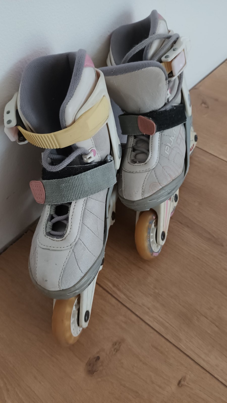 kolieskové korčule s posuvnou veľkosťou, majú známky nosenia, zohľadnené v cene, môžu ešte poslúžiť