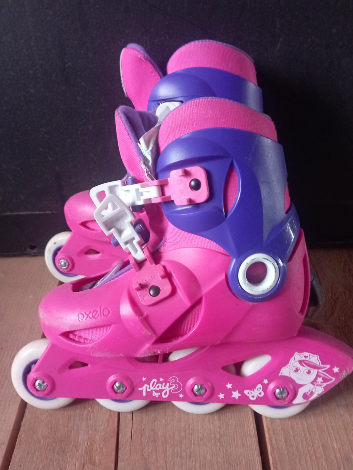 Použité asi tri krát. Kolieska nezjazdene.Nehrkaju.Vyborny stav len plasty trochu suchnute čomu sa nedalo pri padaní vyhnúť.Nastaviteľná veľkosť od 28-30. Osobný odber Horný Vadičov alebo Kysucké Nové Mesto po dohode.