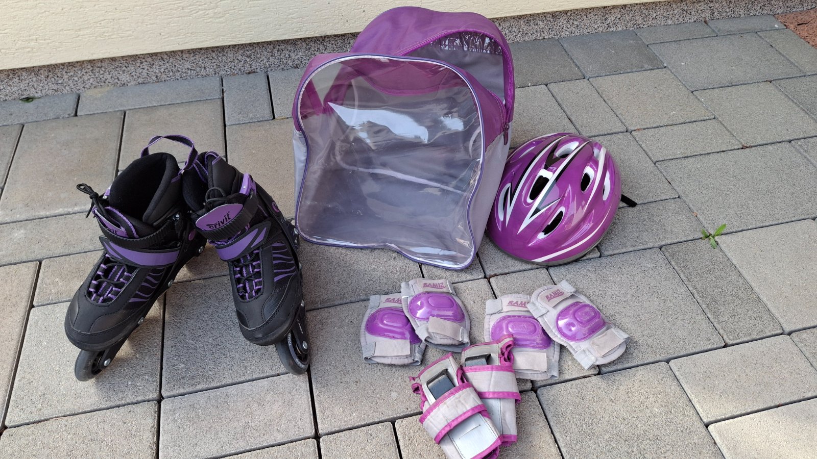 Nastaviteľné korčule veľk. od 29 - 33, plne funkčné, vrátane prilby, chraničov a vaku.