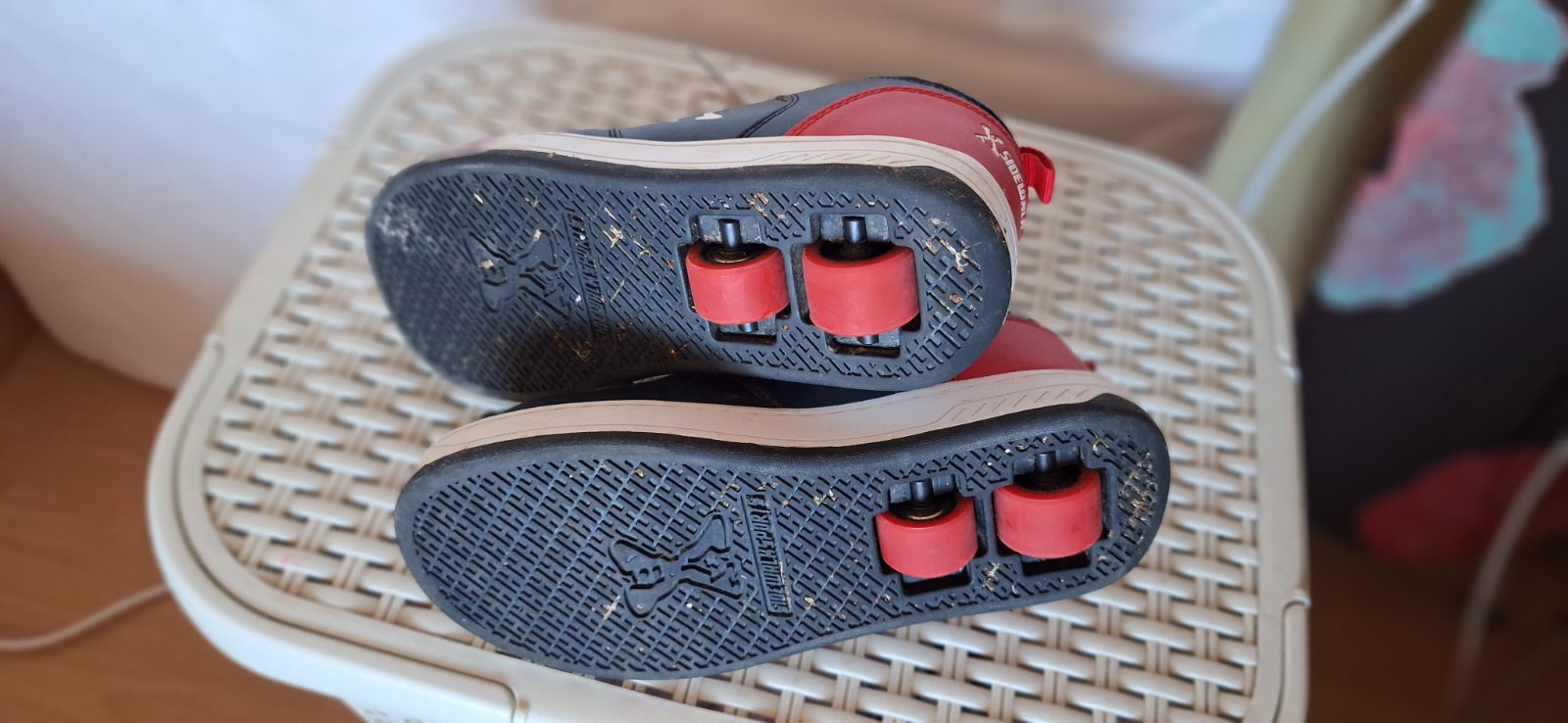 Bez poskodeni, kolieska sa dajú vybrat a používať ako tenisky, malo nosene, asi 2x.