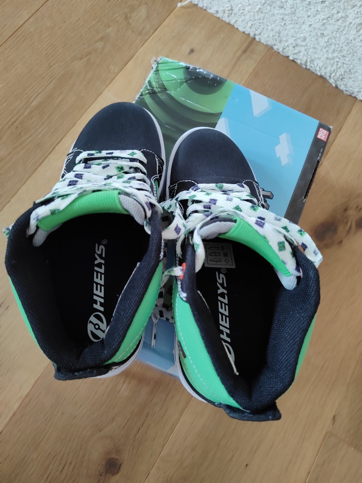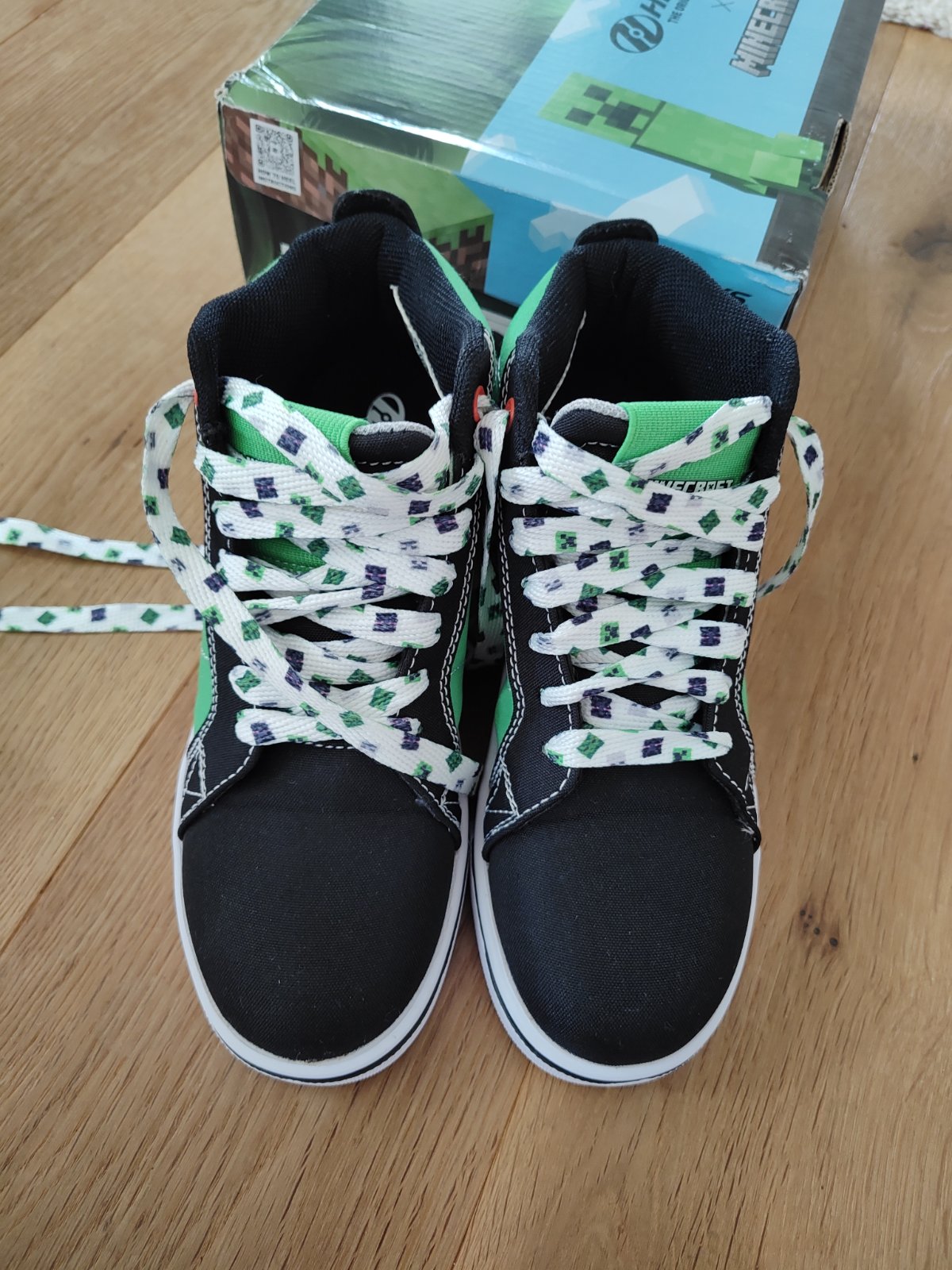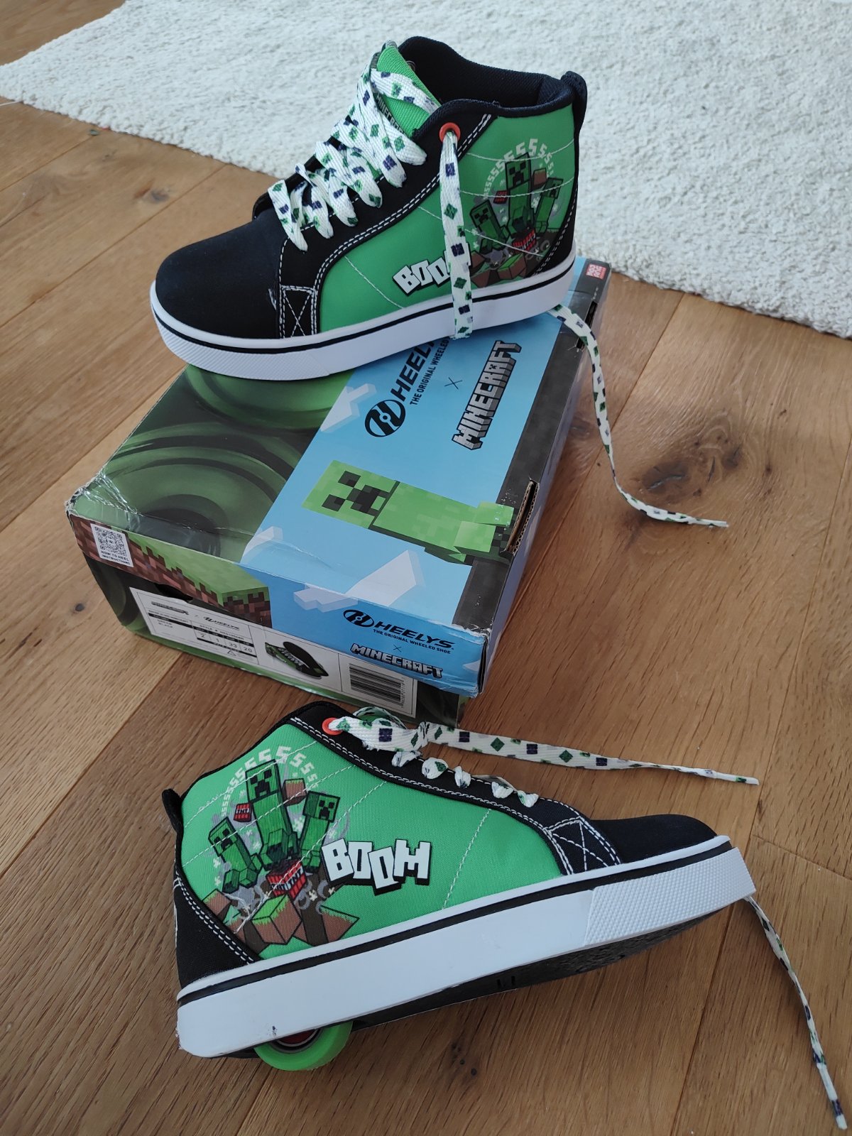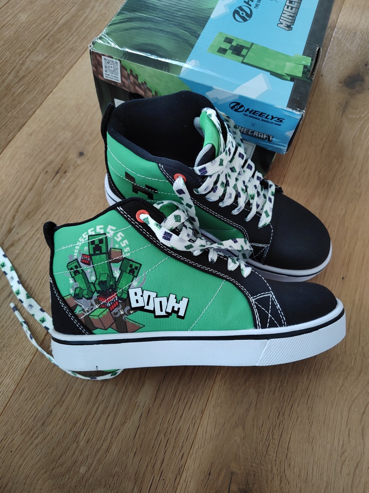 Úplne nové kolieskové topánky heelys s motívom Minecraft. Kolieska je možné odmontovať a dať záklapky. Vtedy plnia plne funkciu topánok. Veľkosť 33.