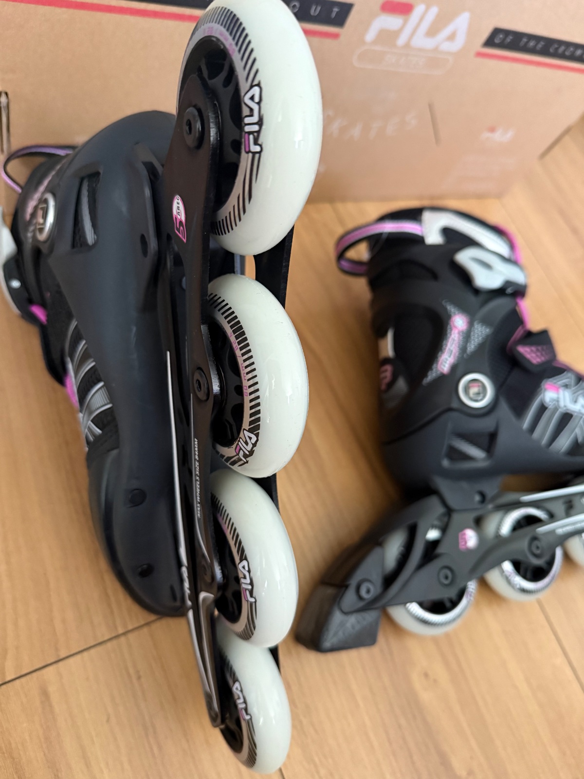 Posúvam po dcére, korčule zachovalé, pár krát použité. Brzda je ako nová, nezodratá, takisto aj kolieska, čo vidno aj na fotke. Cena 45 €