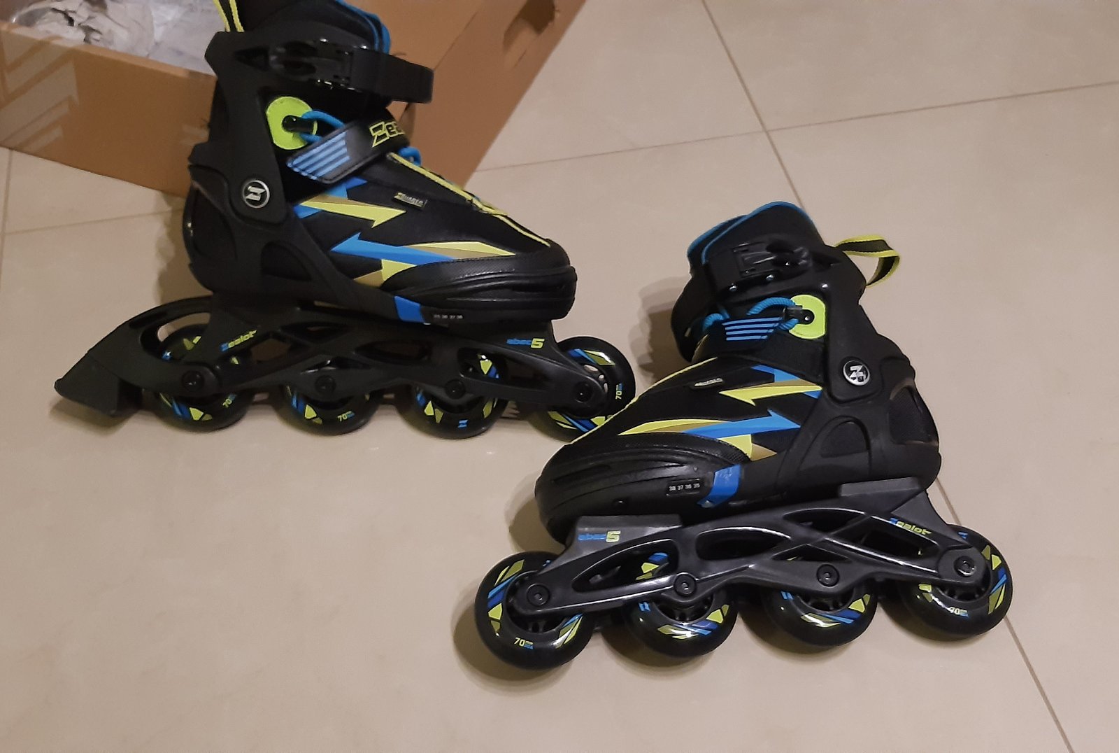 3x jazdené kolieskové korčule, v super stave , originál krabica, veľkou výhodou je nastaviteľná veľkosť v rozpätí od 35 až po 38.