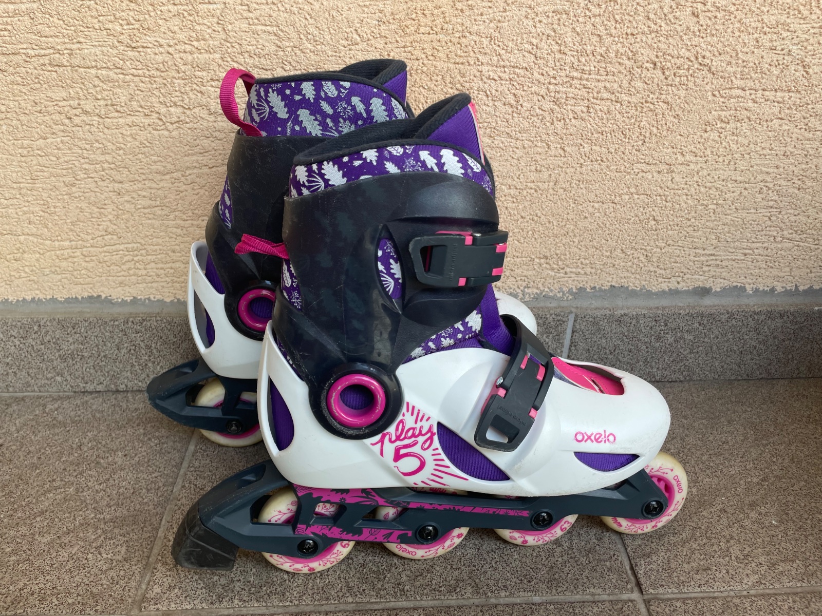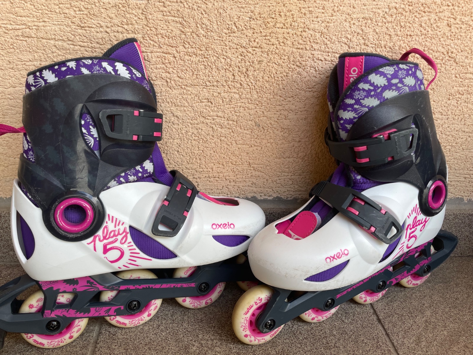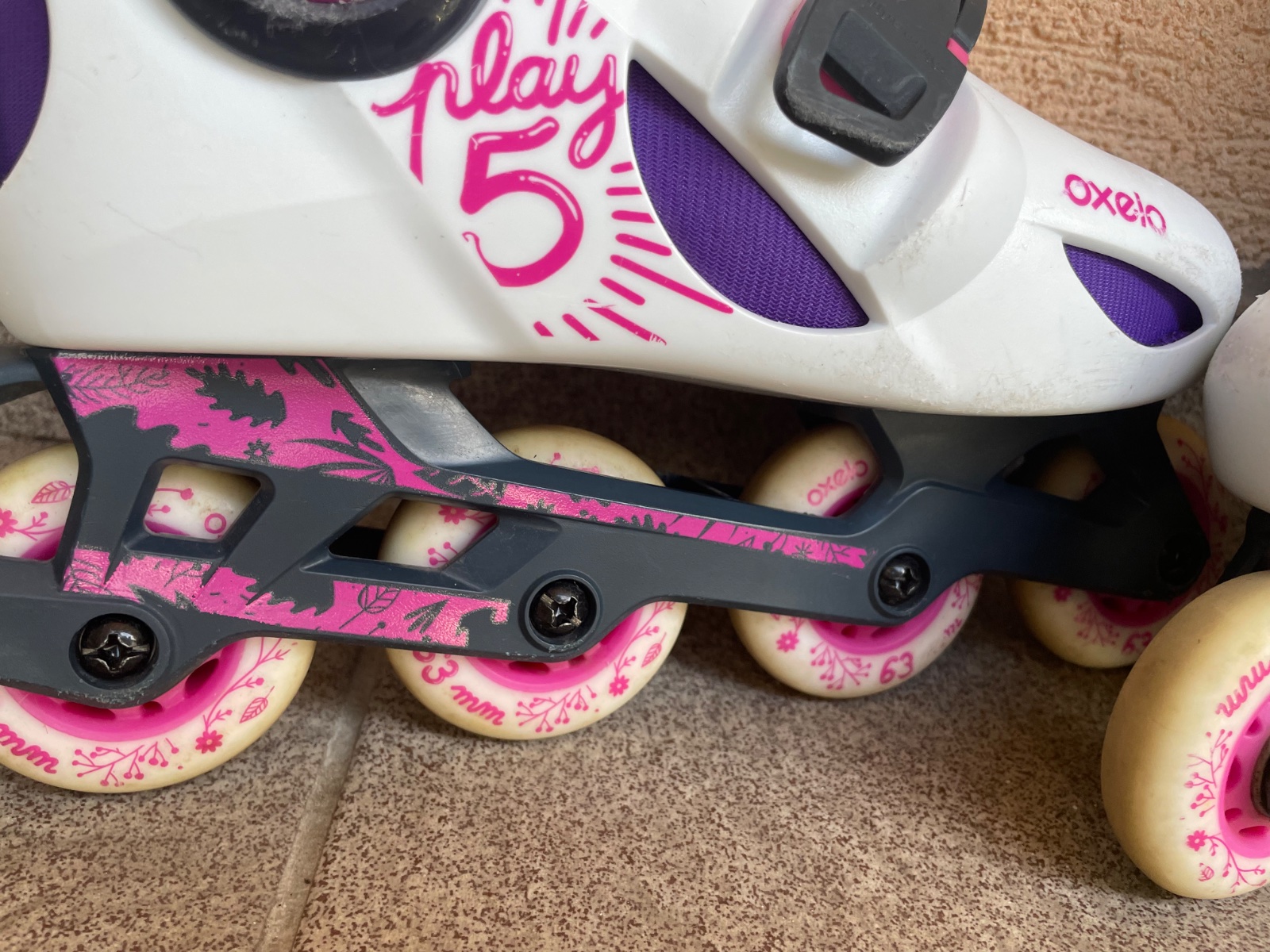 Nosené jedným dieťaťom. Veľkosť 32-34. Vnútorná dĺžka 20-21,5cm. Všetko odfotené, prvé korčule mojej dcéry, dajú sa nastaviť podľa veľkosti nohy. Kúpené v Decathlone. Kolieska idú stále na 100% 🛼 korčuleuľa je už sem tam odretá, ale určite postačia na začiatok 😉