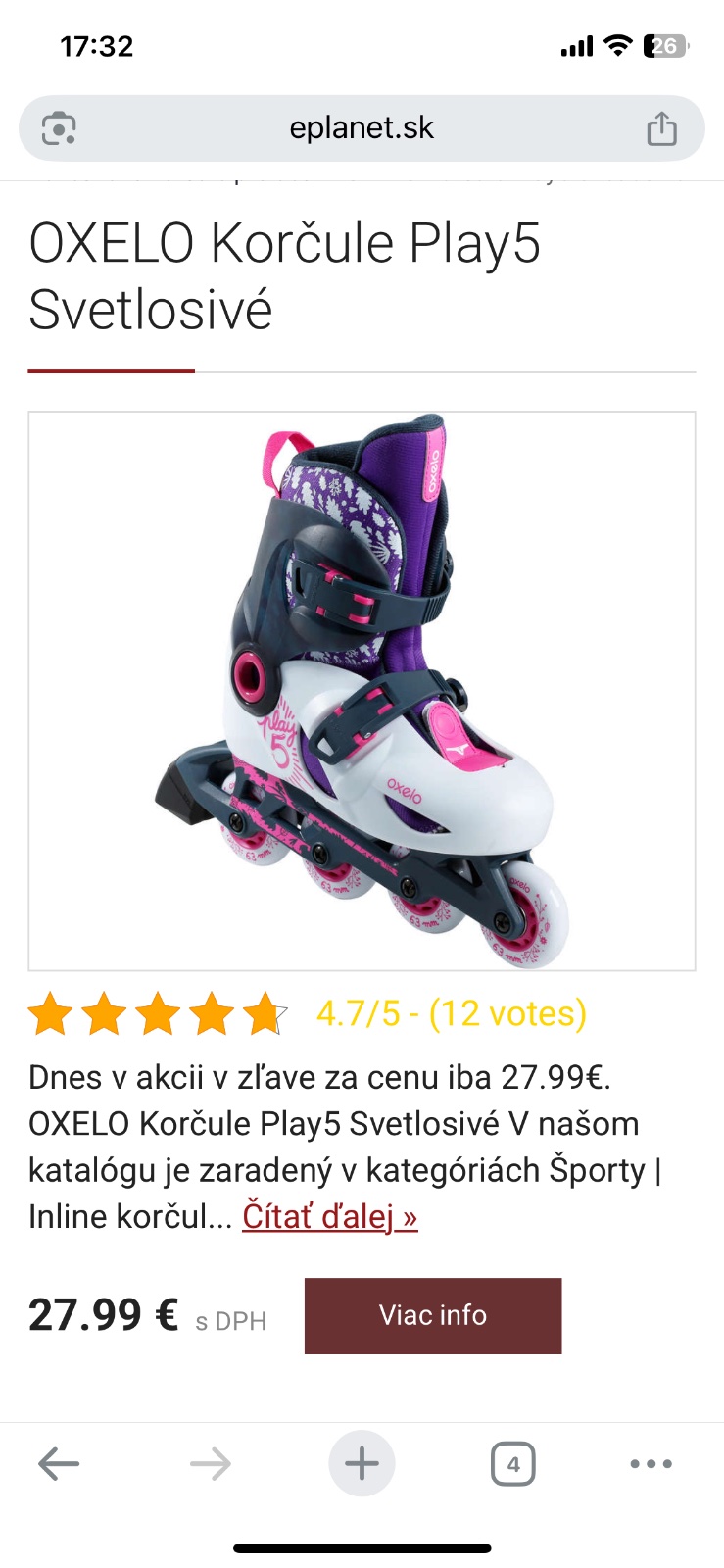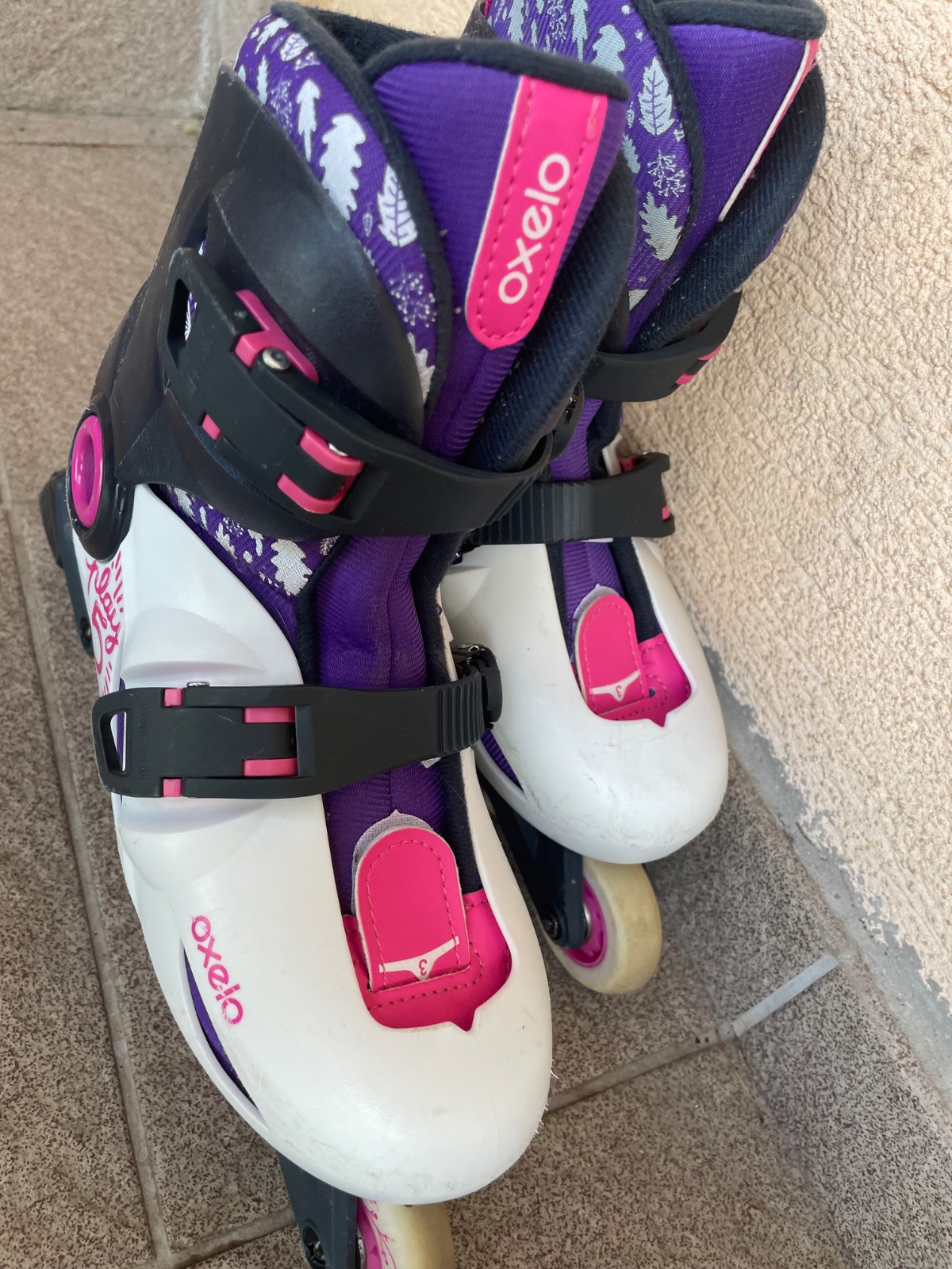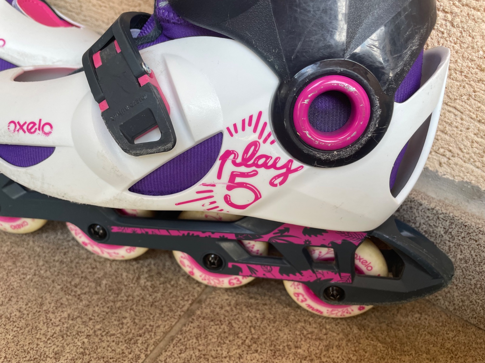 Nosené jedným dieťaťom. Veľkosť 32-34. Vnútorná dĺžka 20-21,5cm. Všetko odfotené, prvé korčule mojej dcéry, dajú sa nastaviť podľa veľkosti nohy. Kúpené v Decathlone. Kolieska idú stále na 100% 🛼 korčuleuľa je už sem tam odretá, ale určite postačia na začiatok 😉