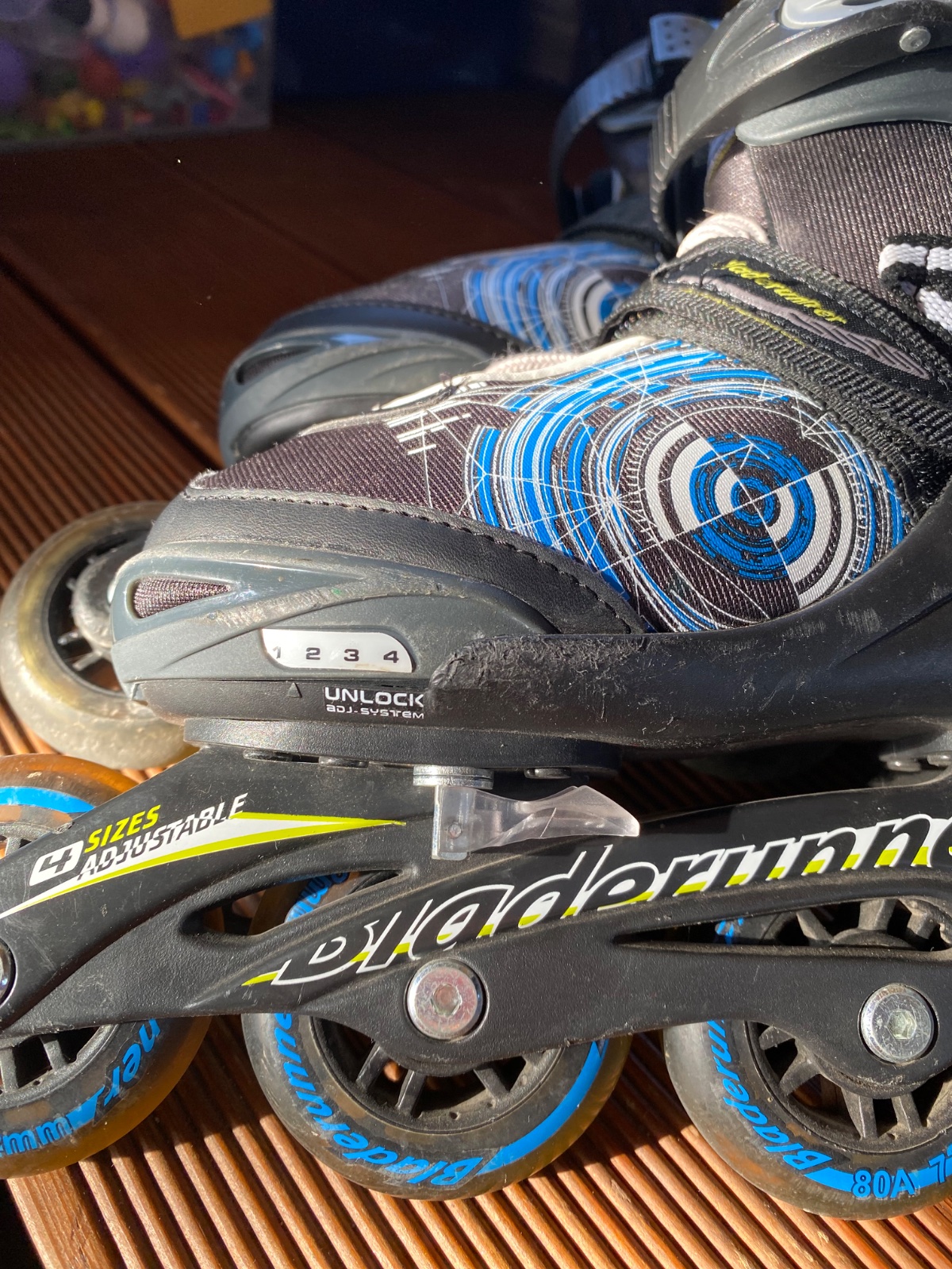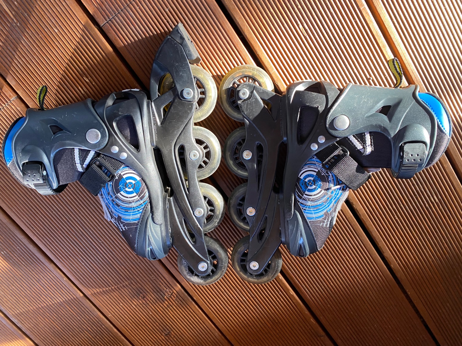 Kolieskové korčule sú používané, ale len párkrát, inak boli len odložené. Majú rajbnutie na topánke aj kolieskach. Zn. Fila Veľkosť 43,5, vnútorná dĺžka 28 cm, kolieska 76 mm a 78A Sú ale na jedno...