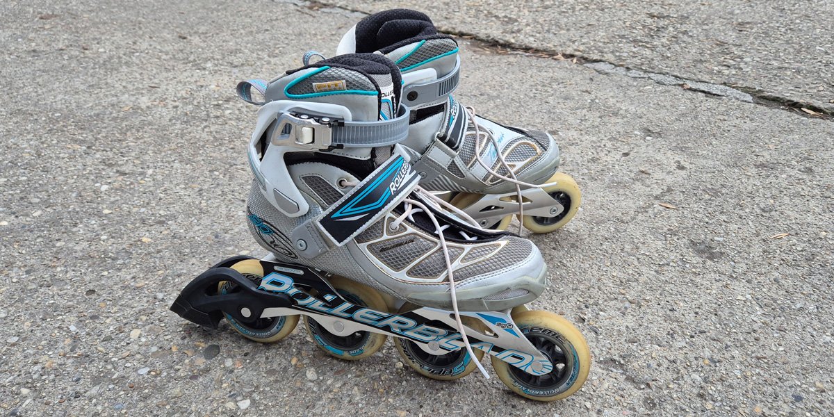 Predám používané dámske kolieskové korčule Rollerblade Tempest 90 W, vo výbornom stave, kolieska 90 mm/85A, veľkosť 39 (25 cm), ložiská: SG9, brzda: áno, je ju možné sňať, farba: silver/blue.