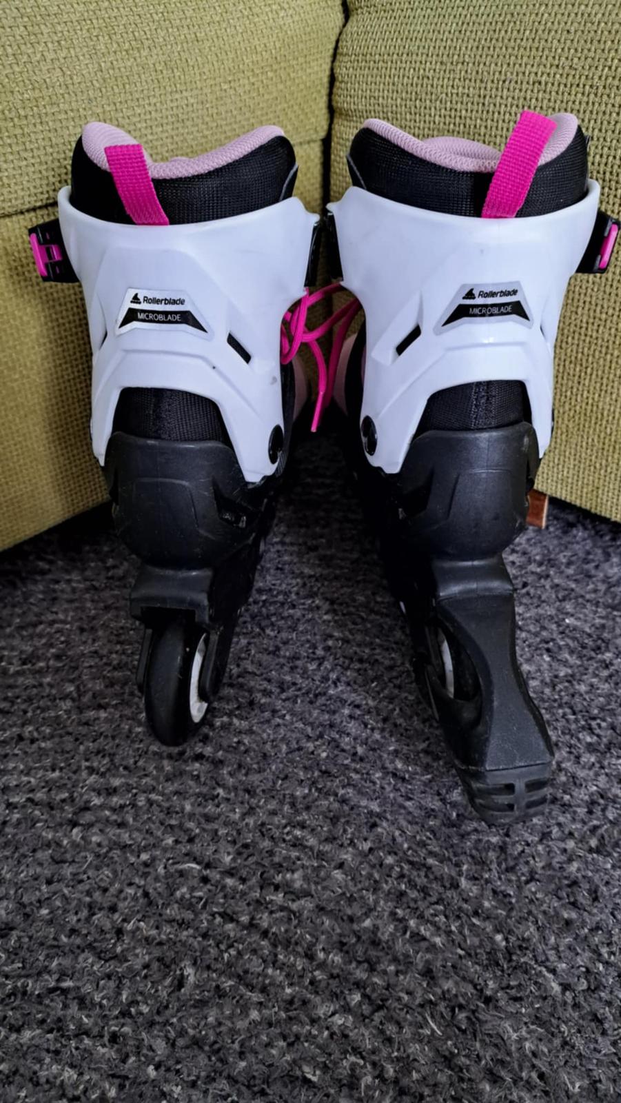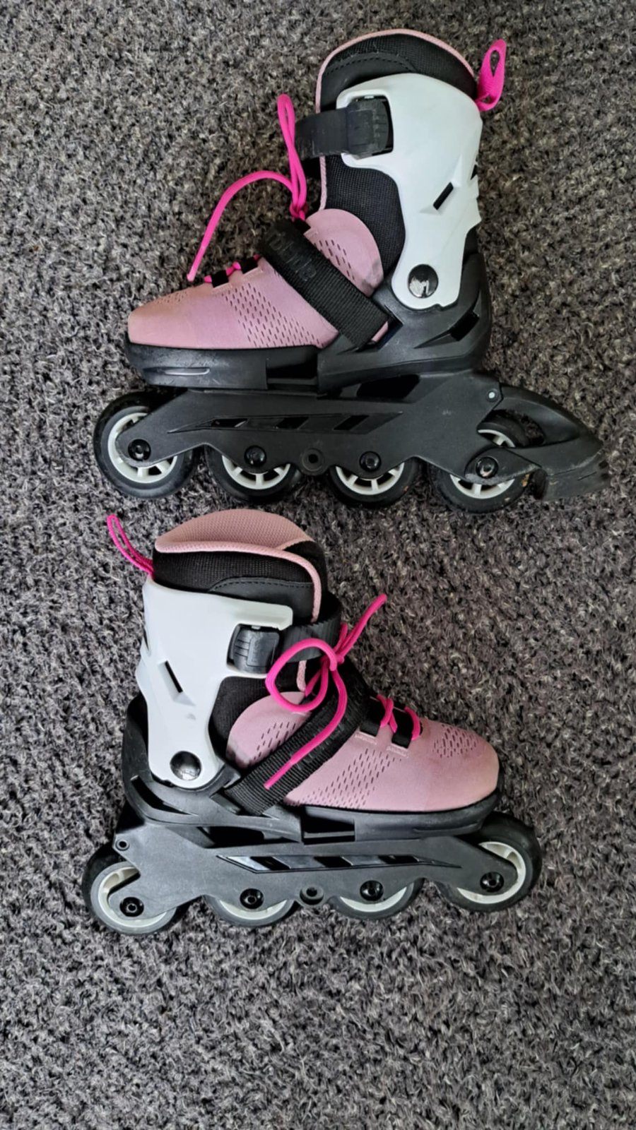 In-line korčule v zachovalom stave. Neboli veľmi používané, ale pri deťoch sa nedá vyhnúť škrabancom a odreniam. Veľkosť je nastaviteľná 28-32, dcéra nosila aj ako 33. Kupované boli nové.