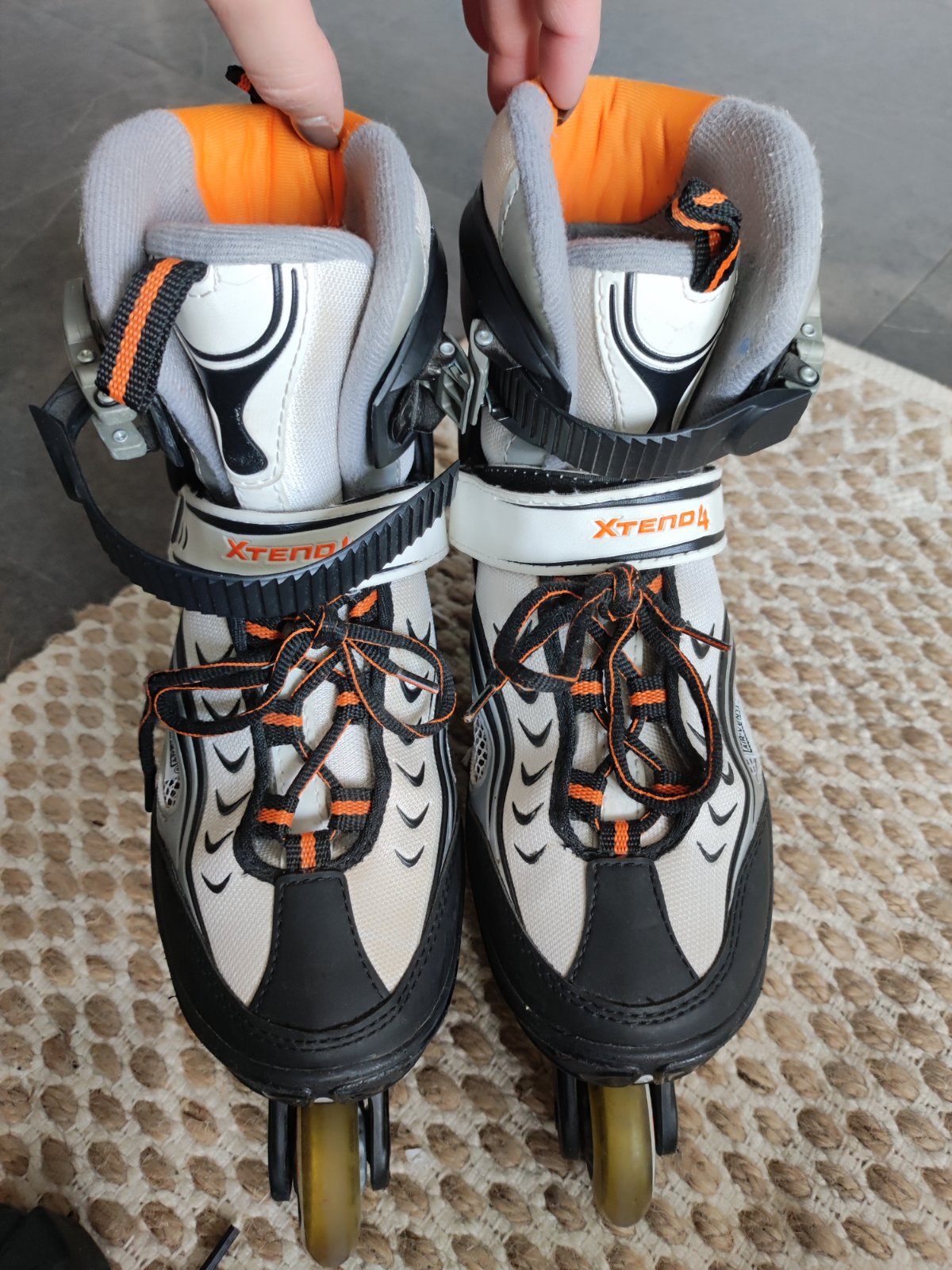 Trojitý systém zapínania tvorený šnurovaním, suchým zipsom a dvojitou sponou zaručuje nielen optimálne prispôsobenie nohám, ale predovšetkým najvyššiu úroveň bezpečnosti. Dvojitá spona zabraňuje samovoľnému uvoľneniu nohy a chráni tak pred pádom a zraneniami. Možnosť regulácie veľkosti vám umožňuje nastaviť veľkosť korčúľ podľa toho, ako vaše dieťa rastie. Málo používané, bežné známky opotrebenia. Pridávam brzdu a daťahovák na kolieska