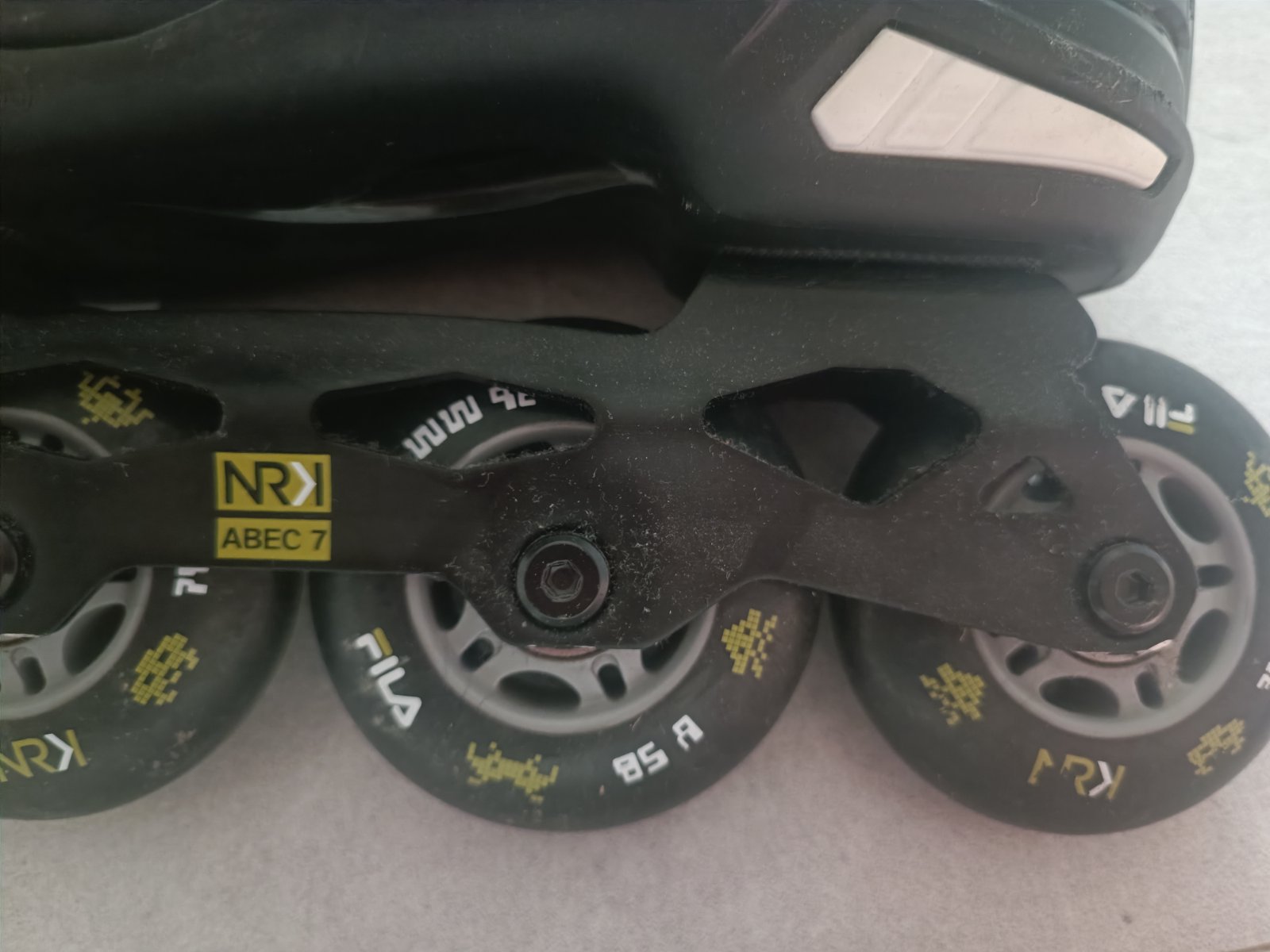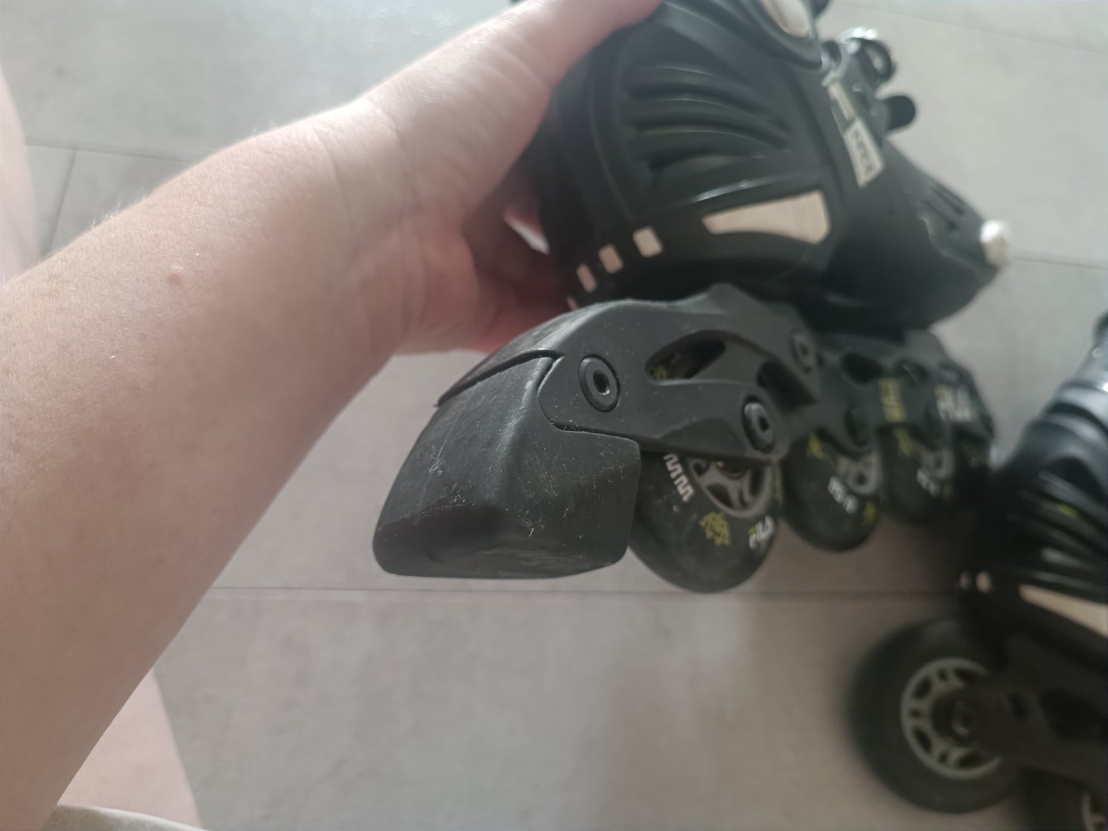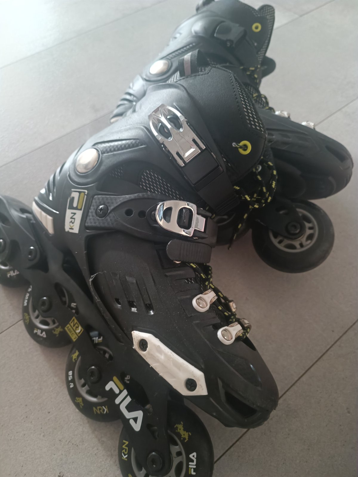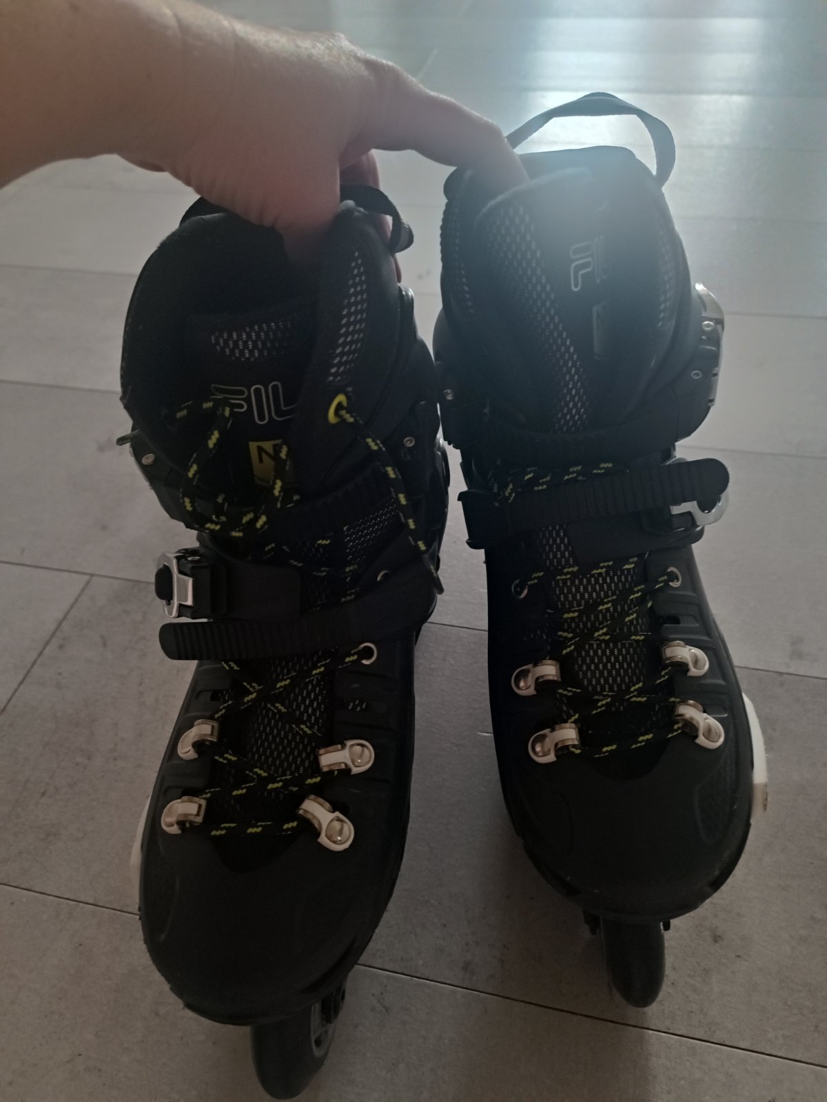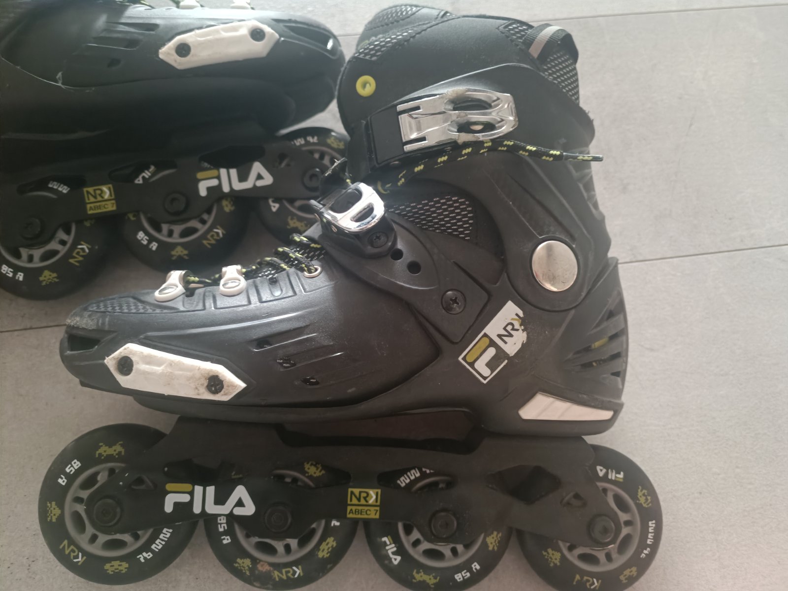 Kolieskové korčule sú používané, ale len párkrát, inak boli len odložené. Majú rajbnutie na topánke aj kolieskach. Zn. Fila Veľkosť 43,5, vnútorná dĺžka 28 cm, kolieska 76 mm a 78A Sú ale na jedno...
