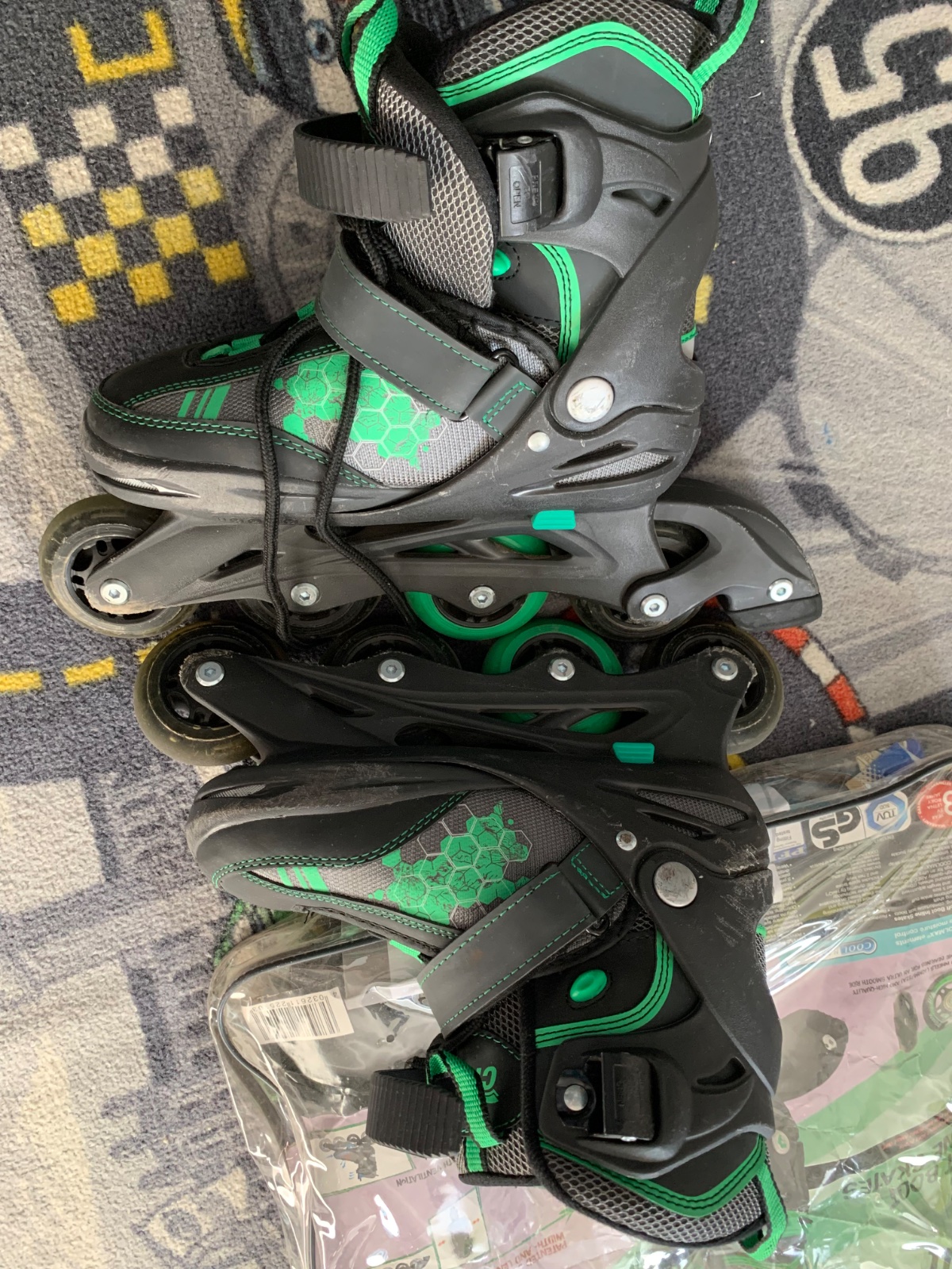 1x obuté, maly nechce korčuľovať a ja ho nebudem nútiť. S návodom, kľúčom, nahradnou brzdou. Nastavovacie veľkosť 32-36.
