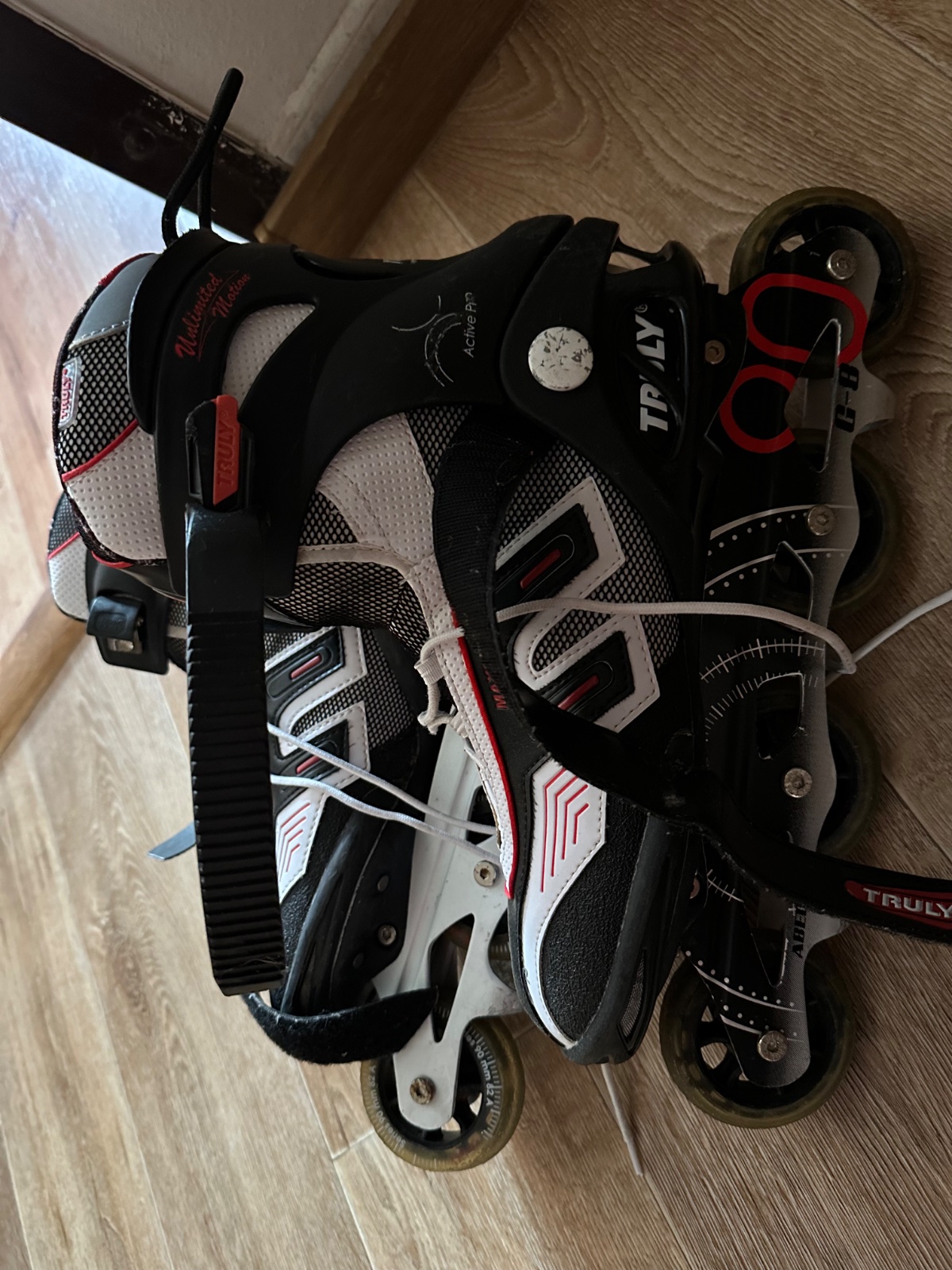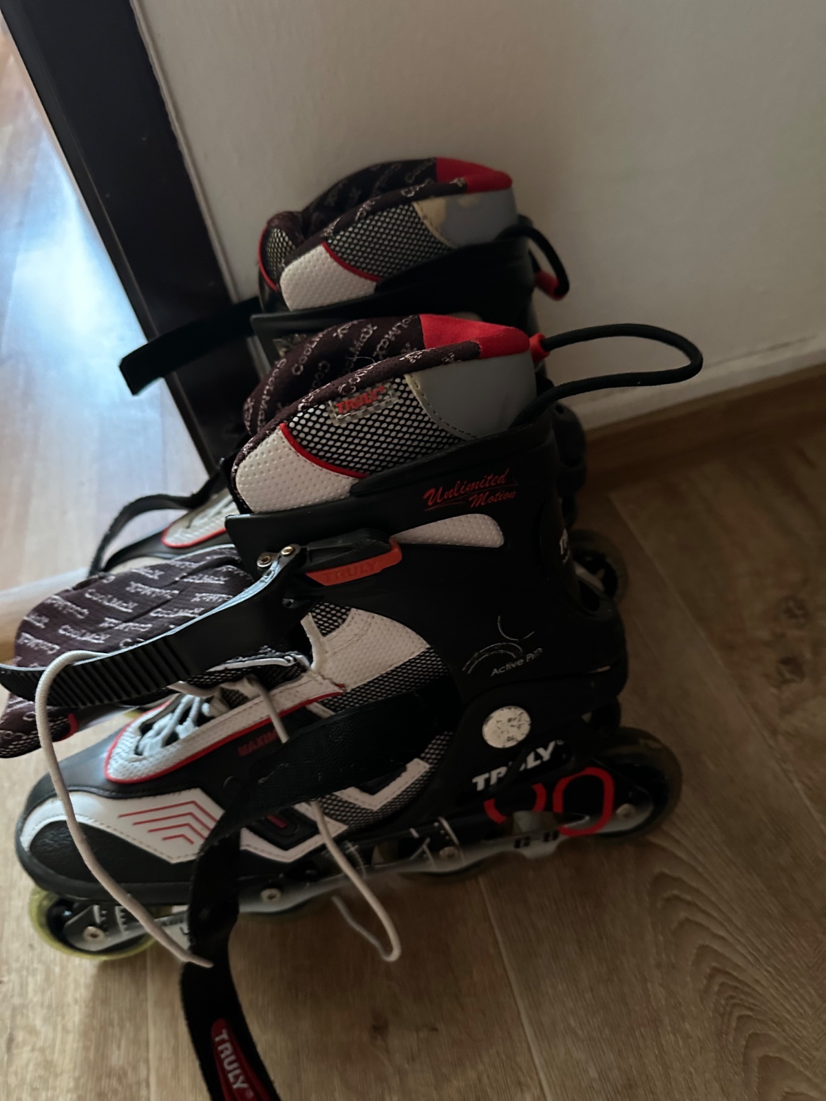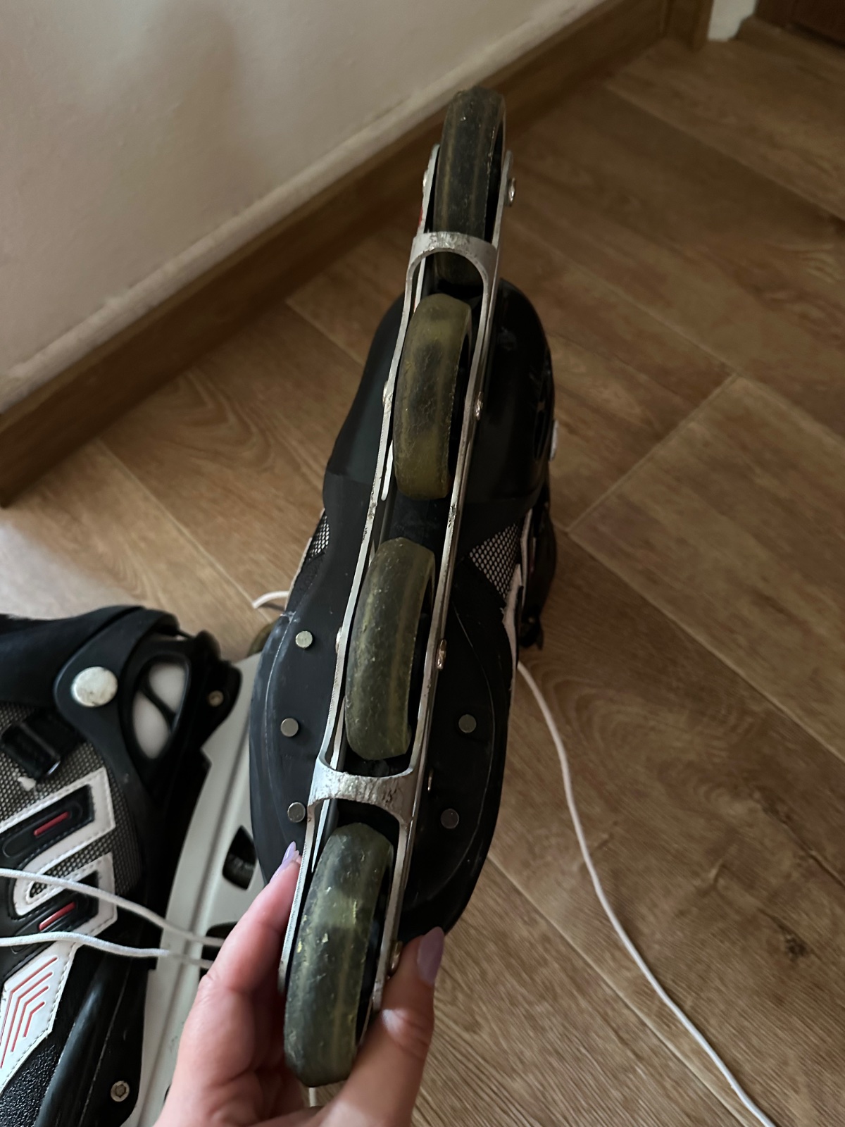 Predam panske korcule, pouzivane dost ale staci vymenit kolieska a stale sa da na nich jazdit. Semtam su osuchane, odrete ale to nebrani pouzivaniu. Cely stav je nafoteny, cena je symbolicka ak niekomu posluzia budem rada. Vnutorna dlzka je merana odoka, nakolko sa nedaju vybrat tak este nejaky 1cm je tam vola. Brzdy su odmontovane, treba dokupit