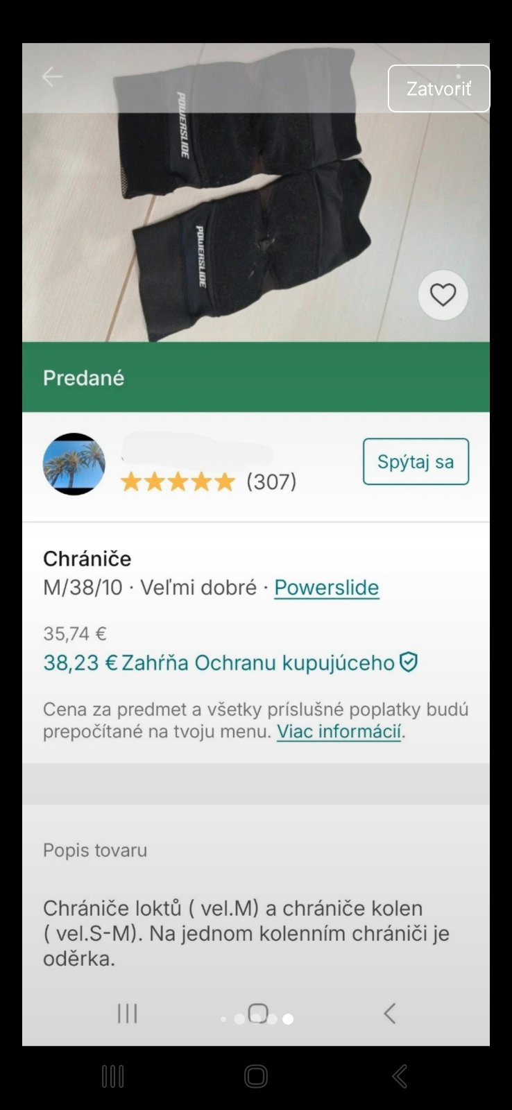 Posúvam ďalej chraniče powerslide. Vhodne na rychlu jazdu na korculiach. Chranice nezavadzaju pri pohybe. Na ruky veľkosť M a nohy S-M. Na jednom kolennom chranici je oderka take som uz kupila. Je to len drobna kozmeticka vada. Kupovala som ich na druhom bazari avšak sú mi malé. Na konci mam screen. Posúvam za rovnakú sumu ako som ich kúpila.