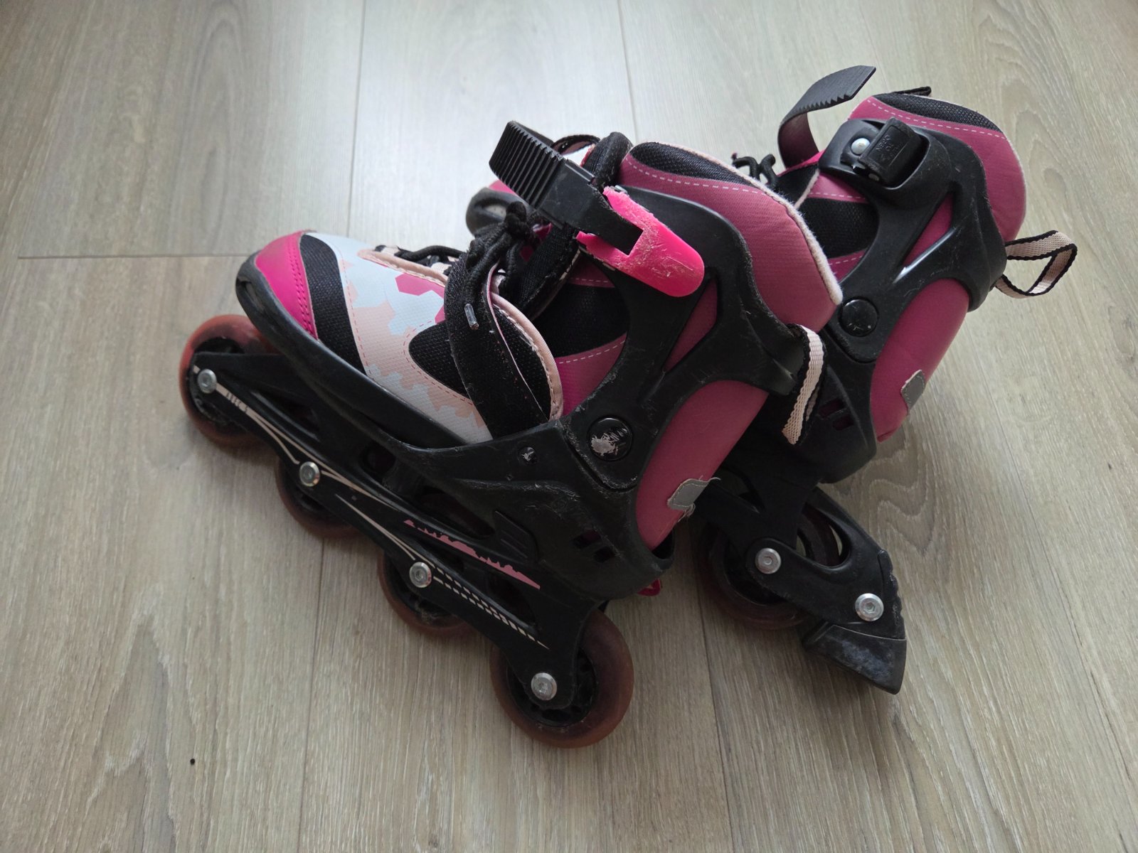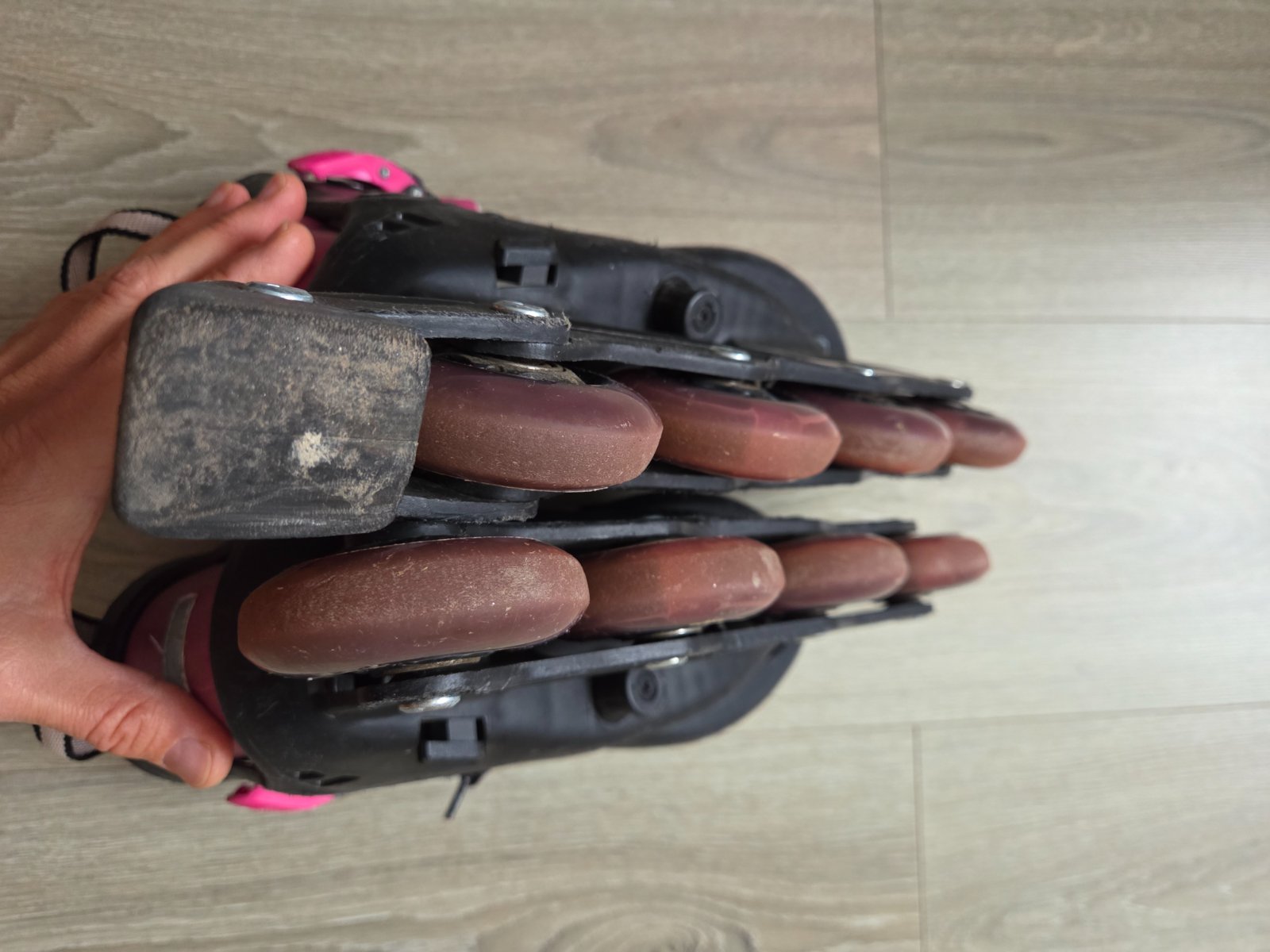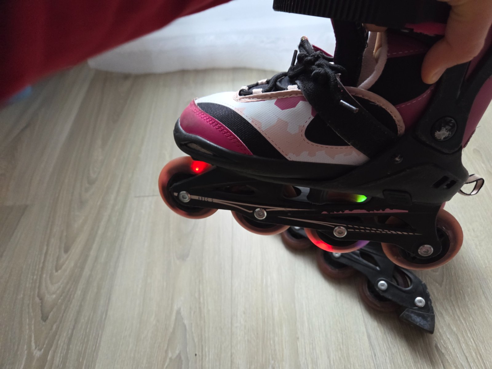 Povrchové odreninky, inak plne funkčné, 1 a 3-tie koliesko na oboch korčuliach svieti pri korčuľovani.