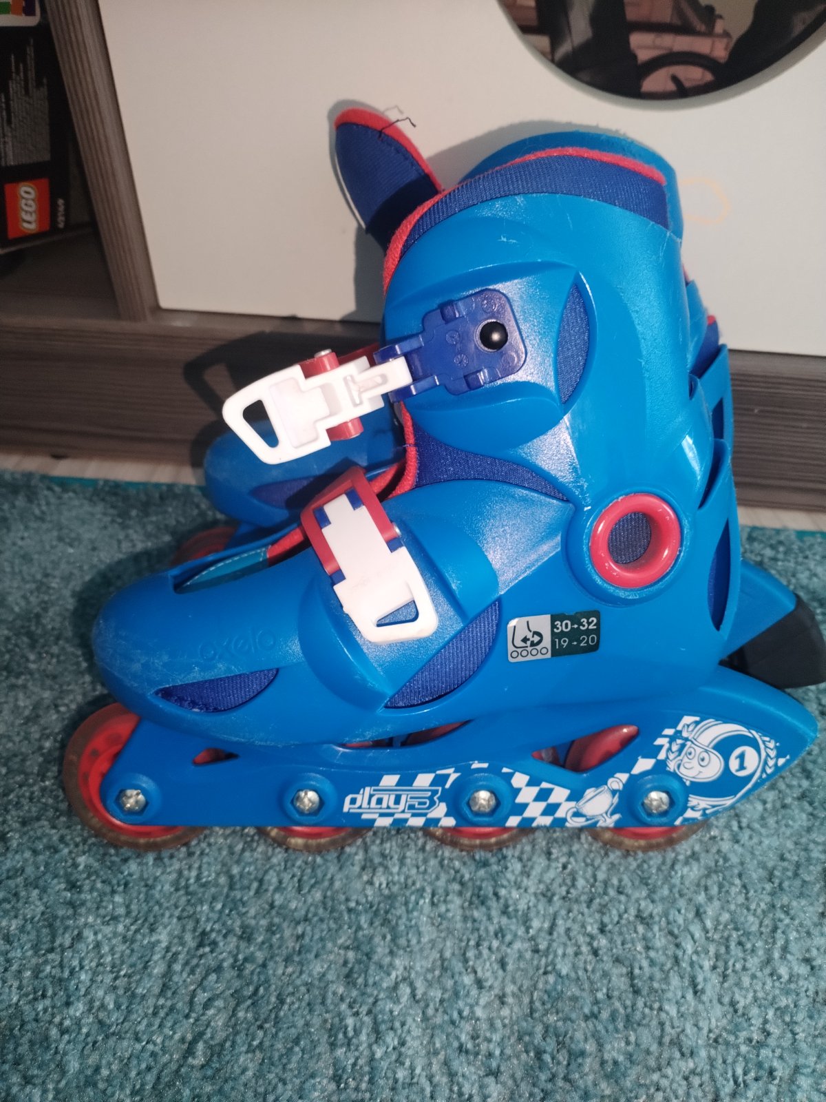 Párkrát použité, nastaviteľné 30-32, špička a boky trochu ošúchané, ale vnútorná vložka a kolieska v top stave. Mám k nim aj chrániče na 6-10 rokov. Cena spolu 30€ Korčule 20, chrániče 10