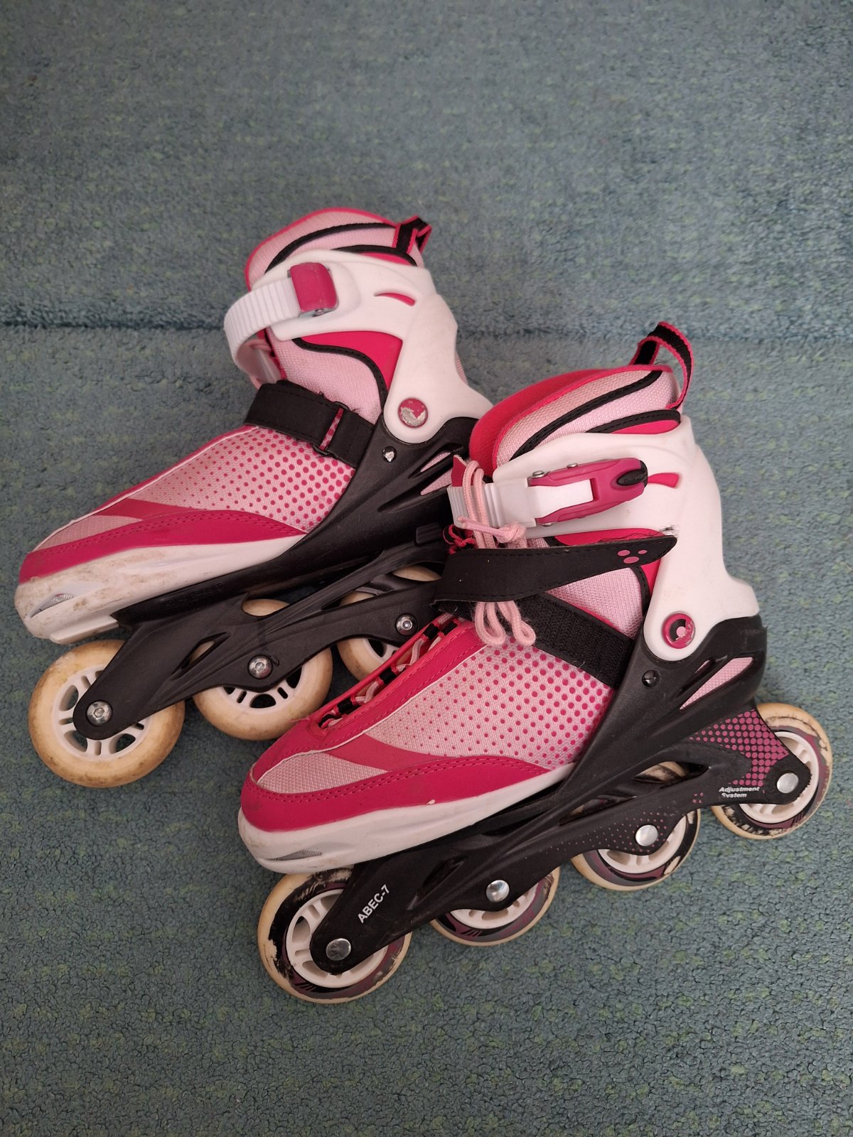 Pouzivane kolieskove korcule zn. Worker s nastavitelnou velkostou od 34 do 37, ziadne poskodenia, len osuchane, kvalitne kolieska.