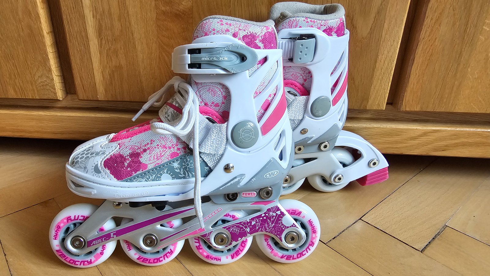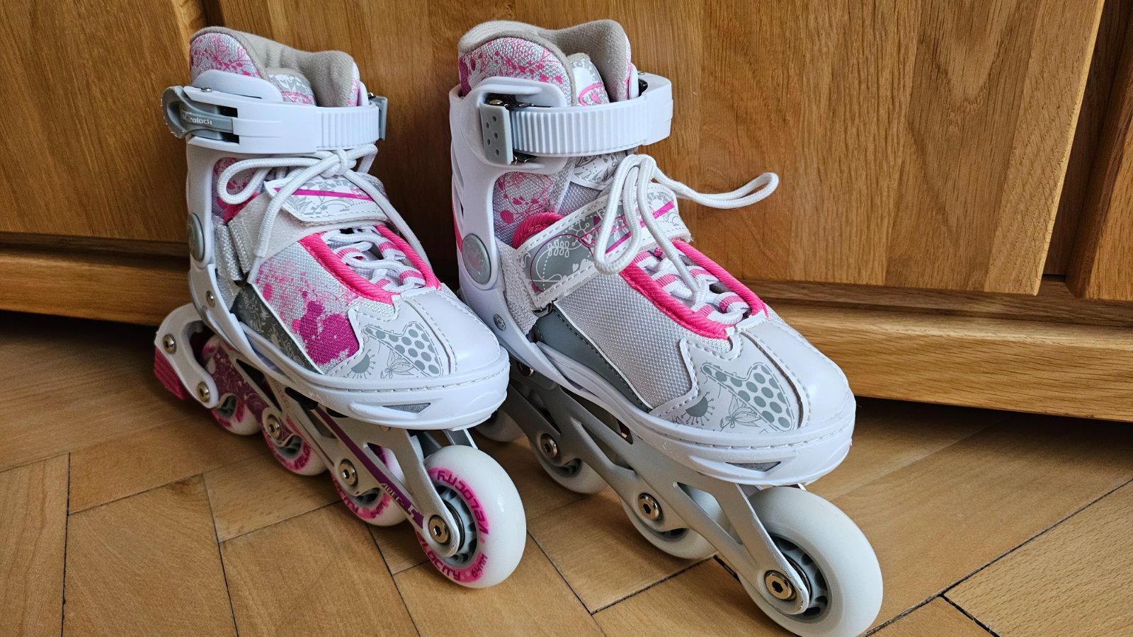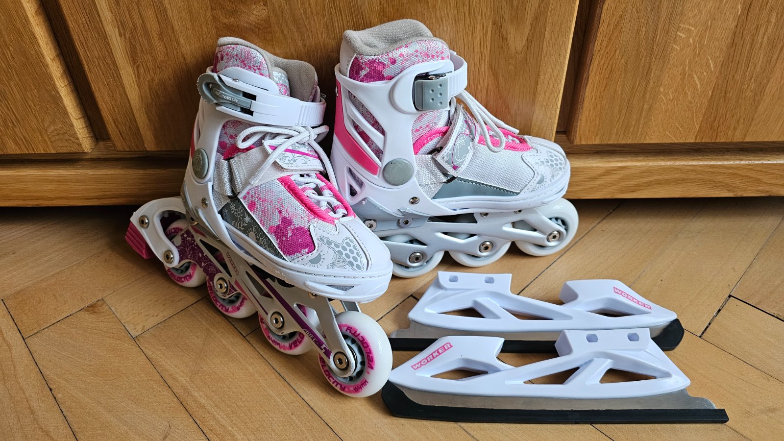 Predám korčule 2v1 WORKER Pinkola, nastaviteľnej veľkosti 27-30 pomocou páčky na spodnej strane korčúľ.