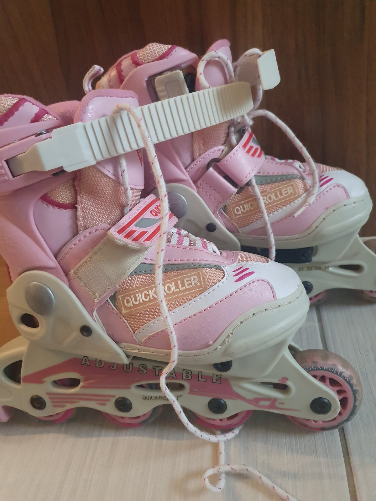 Veľmo zachovalé korčule.Vnútorná vložka je na najmenšiu veľkost 31.Daju sa nastaviť od veľkosti 31 do 34.