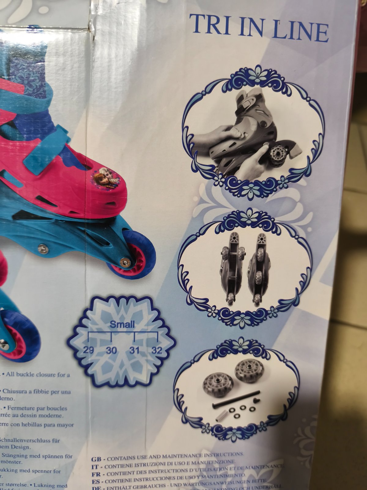 Pouzite...nastavitelne velkosti 29-32. Na prve skusanie super.. da sa urobit pre lepsiu stabilitu vzadu dve kolieska vedla seba