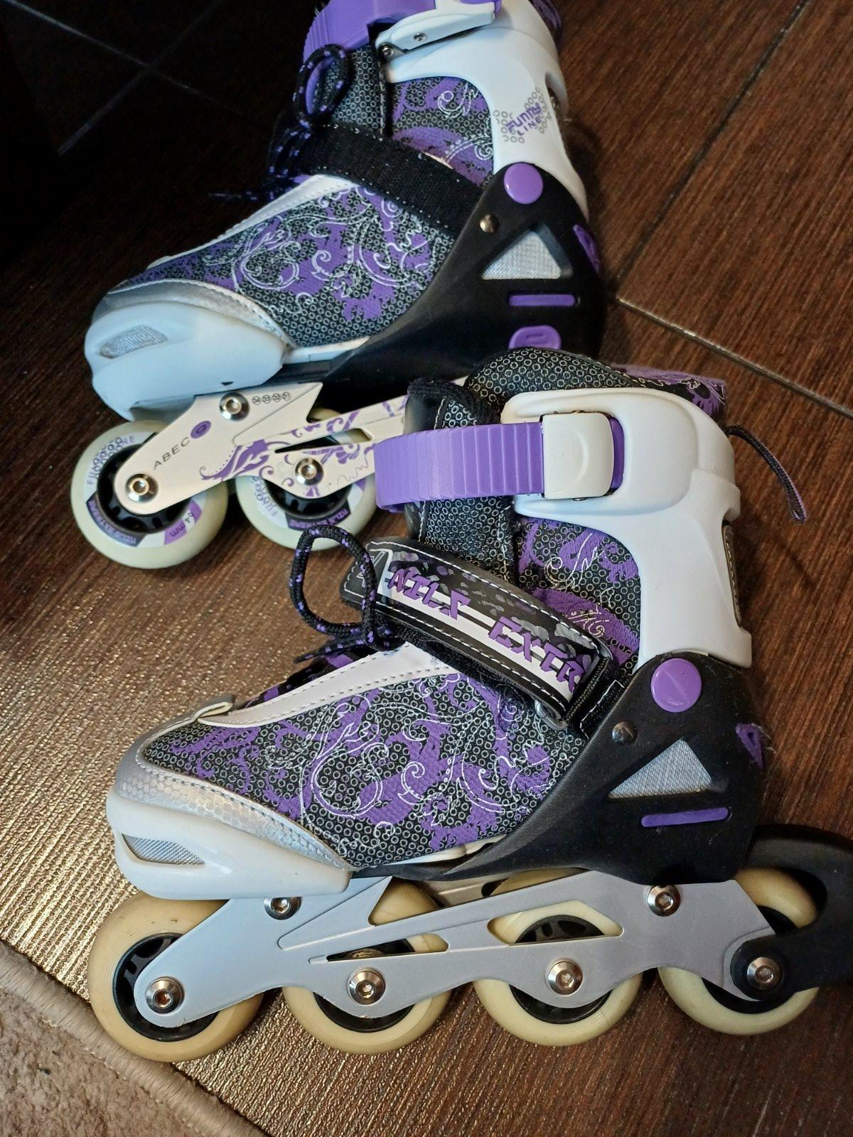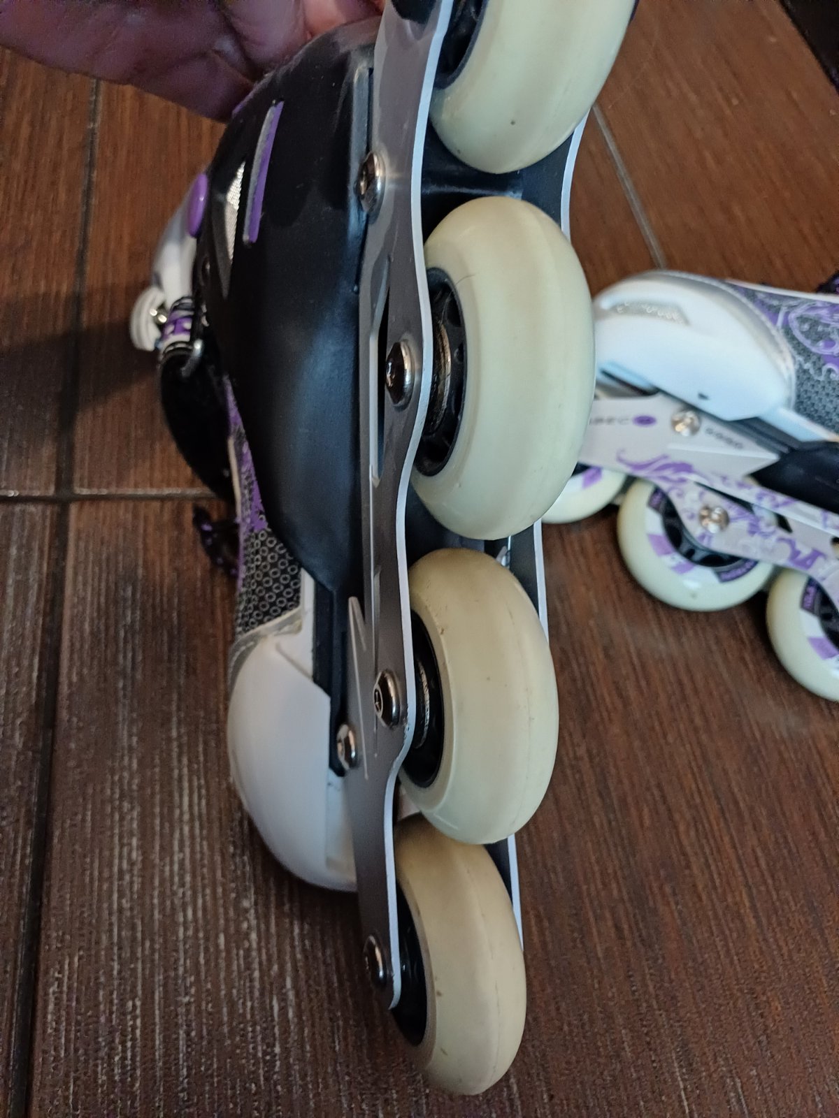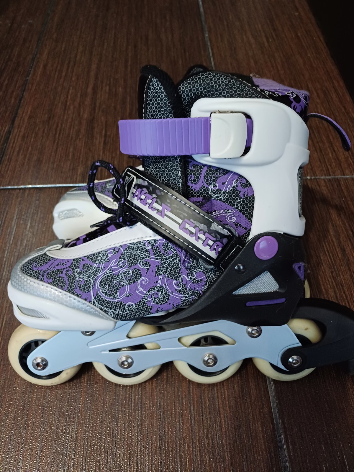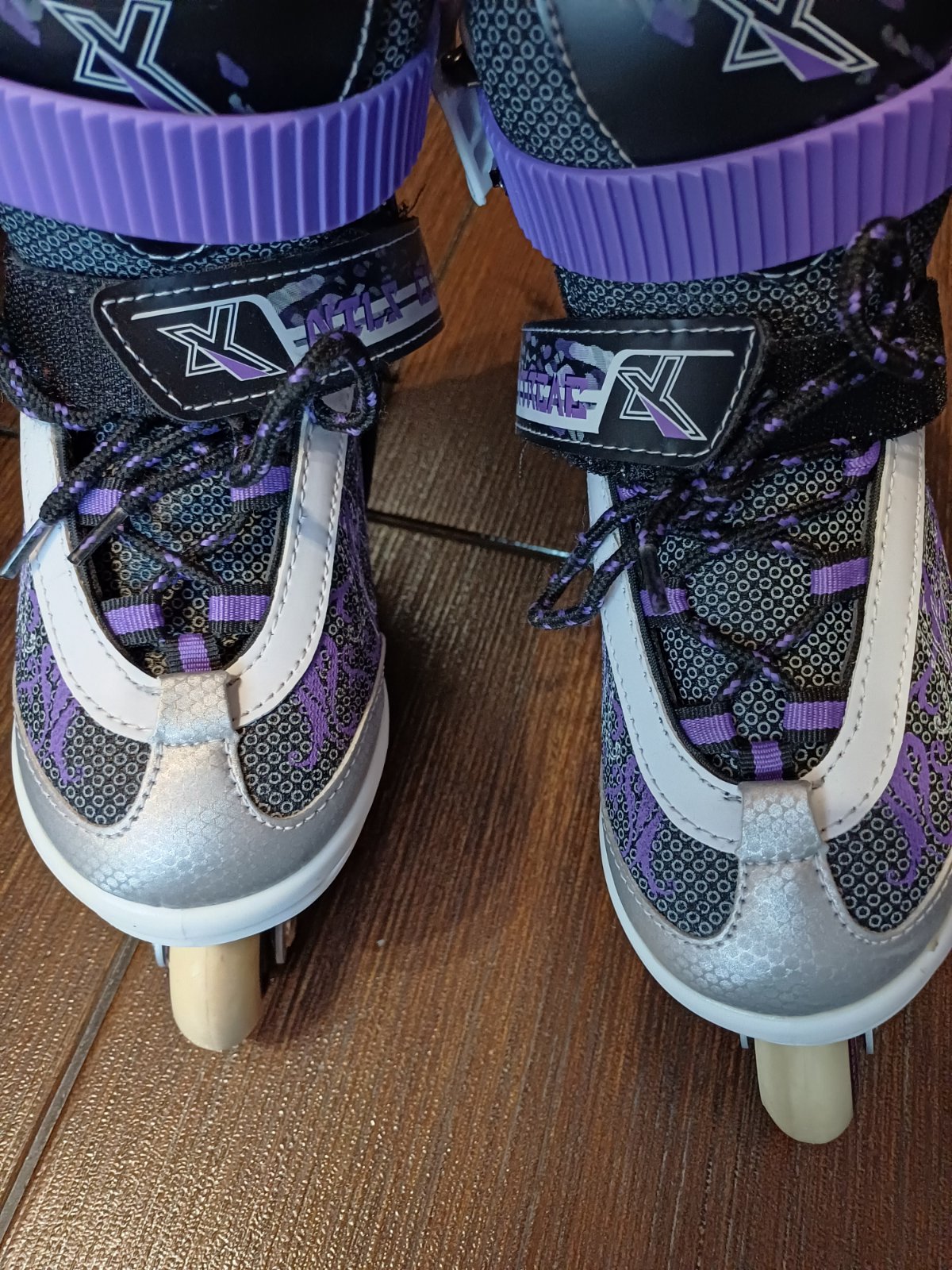 Super korčule , výborný stav, sem tam odreniny nic vazne, nastaviteľná veľkosť jednoduchým Push gombikom v rozmedzí 31-34