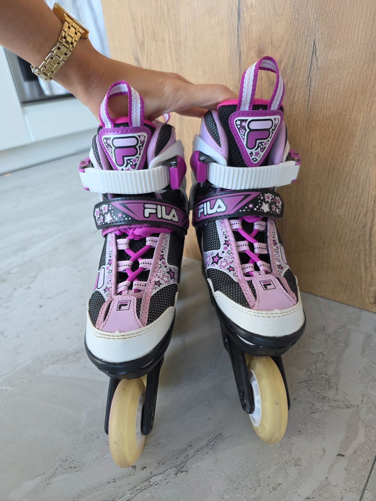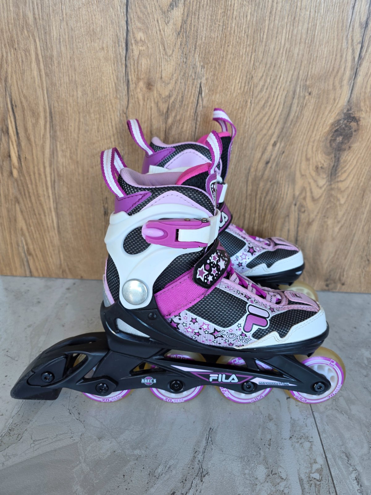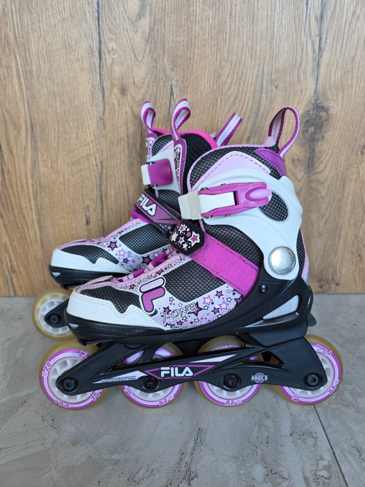 Rastúce korčule vo veľkosti 28-32, to znamená 17-19cm. Dcéra sa na nich učila, takže majú minimum chybičiek krásy. Kolieska nie sú vydraté a brzda je len minimalne opotrebovaná. Zapínanie je tiež plne funkčné.
