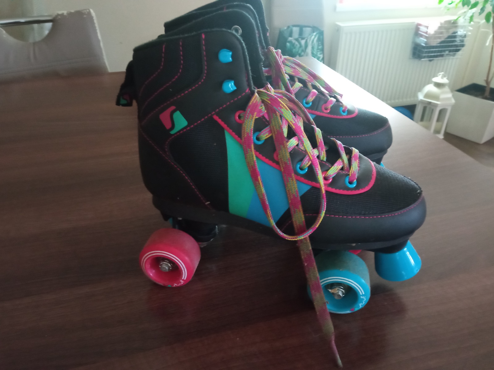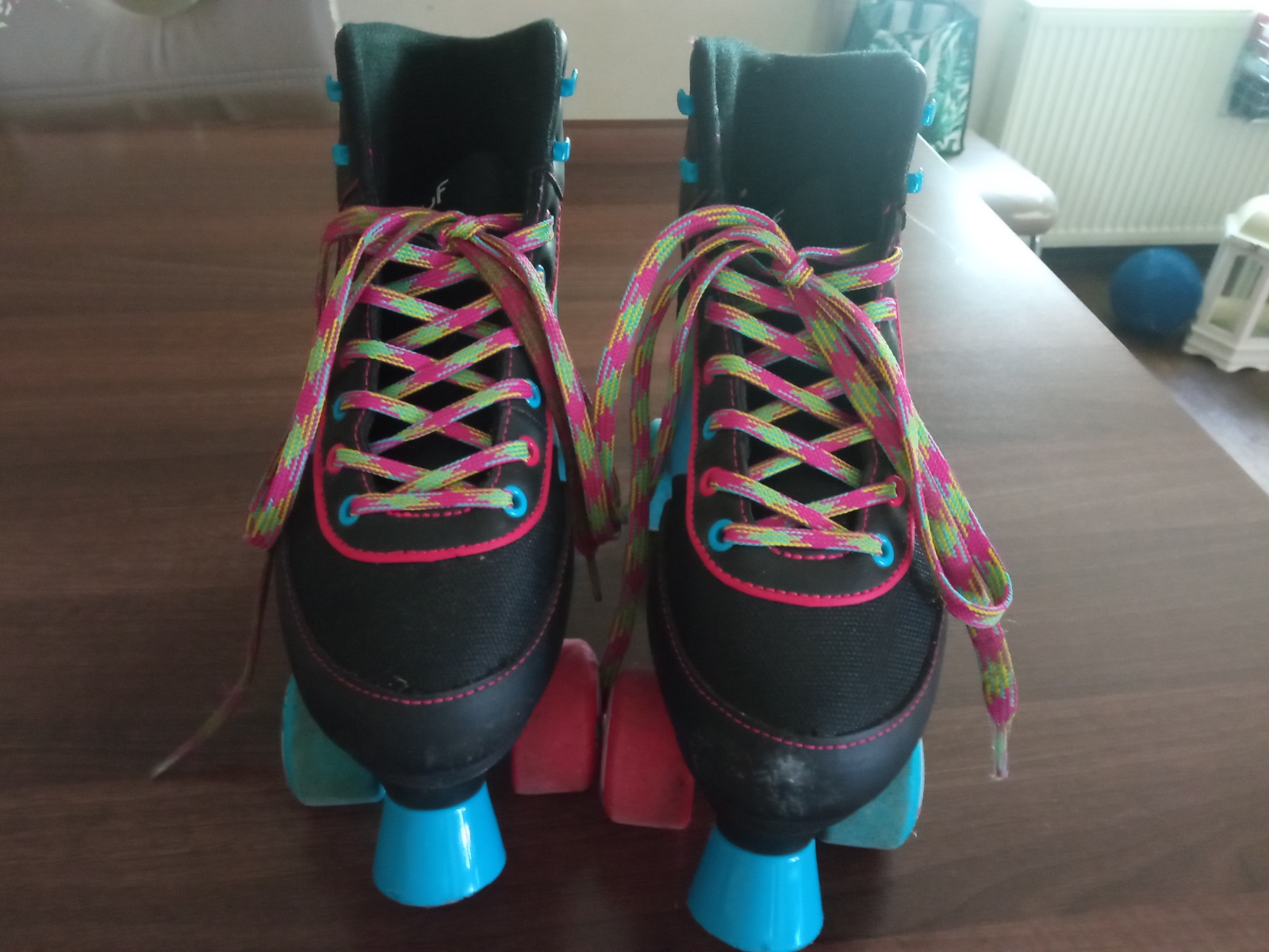Predám párkrát použité kolieskové korčule. Sú ako nové, bez poškodenia. Sú veľkostne nastaviteľné od 37 do veľ. 40. Ideal osobný odber. Cena je uvedená bez poštovného. Chrániče grátis.